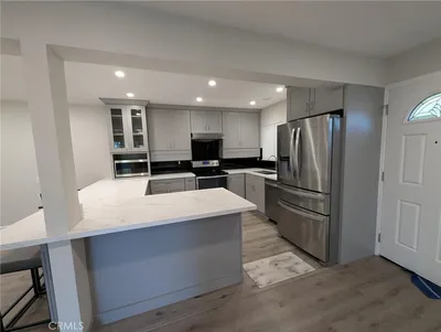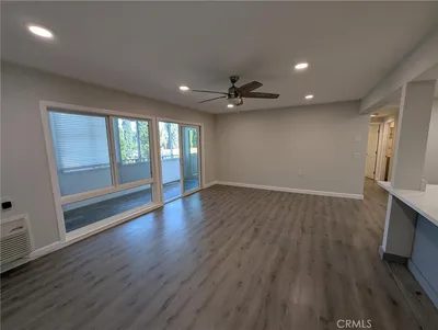 55+ Community! This beautifully updated "CASA CONTENTA" condo offers the perfect blend of comfort, style, and functionality. It is AVAILABLE JUNE 30, 2026. Located steps from the carport, there are NO STAIRS to reach the front door. The spacious living area with recessed lighting and ceiling fan opens to an enclosed patio with functional glass windows is perfect for your home office. The open-concept luxury kitchen include quartz counters that wrap around to include bar seating, stainless steel appliances, and plenty of extra cabinet storage. Other features include newer dual pane windows, smooth ceilings and luxury vinyl flooring throughout. The guest bedroom has a ceiling fan, spacious closet space and access to the patio via sliding door. The Hall bathroom includes a spa quality shower with rain shower head, handheld and bench. The primary suite has recessed lighting, ceiling fan, linen storage, multiple closets, and full size washer/dryer. The ensuite bath includes a jetted soaking tub and bidet style toilet and safety grab bars. Laguna Woods residents enjoy a 27-hole championship golf course, a 9-hole executive par 3 course, pickleball and tennis courts, lawn bowling, gyms, clubhouses, swimming pools, horse stables and over 200+ clubs and organizations.