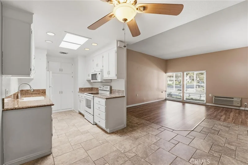 This light-filled Monterey model condo with inside laundry in Laguna Woods offers a perfect blend of security and style, starting with a large gated, lockable front patio that ensures total privacy and peace of mind. Upon entering, you are greeted by an expansive open floor plan featuring high ceilings, tumbled travertine, and faux wood flooring, while oversized front windows flood the living area with natural light. The gourmet kitchen is a chef’s delight, equipped with granite countertops, extensive storage for pots and pans, and matching Maytag appliances. Both bedrooms serve as elegant retreats, finished with wood flooring, large closets, and classic crown moldings, while the spa-like bathroom impresses with granite countertops, travertine floors, and a custom travertine shower with seamless glass doors. Even more home in-home laundry! Perfectly situated with a large front yard and located just steps from a convenient community bus stop, this home combines modern luxury with an ideal, accessible location. Beyond the front door, the City of Laguna Woods provides a secure, guard-gated sanctuary defined by lush, well-manicured landscaping and tranquil greenbelts maintained by the HOA. Life in Laguna Woods Village means enjoying resort-style living every single day with access to a remarkable array of amenities, including 27 holes of championship golf, a 9-hole executive course, tennis and pickleball courts, multiple swimming pools, and state-of-the-art fitness centers. Residents also benefit from equestrian facilities, professional art studios, woodworking shops, and performing arts venues, alongside over 250 social clubs and classes—ensuring there’s always something new to do and new friends to meet. Surrounded by scenic walking paths and rolling greenbelts, this community is meticulously designed for relaxation, recreation, and connection.