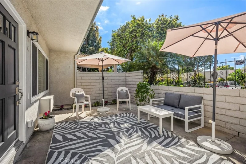 55+ Community. No expense was spared to create this meticulously updated and reconfigured 1-bedroom, 1-bath CORONADO Model co-op. This move-in ready gem has no one ABOVE or BELOW and the added advantage of parking directly in front of the unit. The magic starts upon entry into the spacious west-facing walled patio that provides abundant natural light throughout the day and scenic sunset views. The patio also features a large, concealed storage cabinet for organization. You’ll love the immediate sense of openness and calm upon entering the spacious, flexible floorplan complemented by a large dual-pane picture window. The redesigned kitchen is equipped with custom white shaker cabinetry, a matching movable island with additional storage, quartz countertops, polished glass tile backsplash, dual pantries with pull-out shelves, and a lazy susan. The top-of-the-line Energy Star stainless steel appliances include a convection cooktop, full size oven, microwave and side-by-side refrigerator. The spacious bedroom also has a large window, ceiling fan and plenty of closet space. Look no further for a spa experience than this lovely bathroom featuring a marble top vanity, a subway tiled walk-in shower with handheld spray plus and just the right amount of bling! What sets this home apart is the walk-in laundry room fitted with pull out shelving, drying rack and full-size washer and dryer. To top it off, this home has plantation shutters, smoothed ceilings, crown molding, solar tube and luxury vinyl plank flooring throughout. In addition, there is a new fiberglass entry door with glass and new shaker style interior doors. This remarkable home is ideally situated in the premier 55+ adult community with its impressive amenities including a 27-hole championship golf course, 9-hole executive course, tennis and pickleball, lawn bowling, gyms, swimming pools, horse stables, art studio and classes, plus an 800-seat Performing Arts Center. Dues include trash, water, landscaping, building maintenance and building insurance, Free Transportation Service, security patrol and so much more. Close to Laguna Beach and convenient shopping and medical. Must be 55 years old to live in Laguna Woods Village which is rated as one of the TOP 55 PLUS RETIREMENT COMMUNITIES IN SOUTHERN CALIFORNIA.