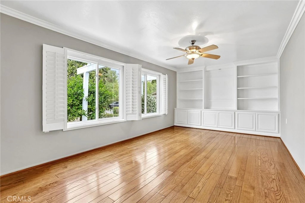 Inviting curb appeal sets the tone from the start, with lush greenery, blooming jasmine, a cheerful lemon tree, and softly glowing solar lights guiding the way to the front door—an entrance that feels as welcoming as it looks. Inside, this desirable El Doble floor plan delivers space, comfort, and just the right amount of “is this really available?” energy. This light-filled, single-level residence features 2 generously sized bedrooms—each with its own en-suite bath—creating a layout that feels more like a thoughtfully designed retreat than a typical condo. Hardwood floors and crown molding carry throughout the main living spaces, while double-pane windows paired with classic shutters bring in natural light with a touch of timeless style. The kitchen offers a crisp, clean aesthetic with granite countertops, a full backsplash, white cabinetry with soft-close drawers, and stainless steel appliances ready for everything from casual mornings to lively evenings. A recently updated HVAC system, including ducting, adds a valuable upgrade already in place. The living room and dining area flow effortlessly into a bright, inviting space anchored by dual sliders that open to a covered patio—complete with skylights and a ceiling fan. Morning coffee, afternoon reads, evening gatherings… it all just works out here. Built-ins in the family room add both charm and function (because storage should look good too). Both bedrooms feel like true suites, featuring dual mirrored closets and private bathrooms—ideal for guests or simply enjoying a little extra breathing room. And for everyday ease, a stacked LG washer and dryer in the garage adds that extra layer of convenience you didn’t know you needed (but won’t want to live without). Set within one of Southern California’s premier 55+ communities, Laguna Woods delivers a lifestyle that feels more like a resort than a neighborhood—golf, tennis, pickleball, pools, spas, fitness centers, clubhouses, even equestrian facilities—all connected by convenient community transportation. Just minutes from Laguna Beach, shopping, dining, and major medical centers, this location keeps everything within reach while still feeling like a world of its own. Opportunities like this don’t tend to linger—so if this one feels like “the one,” you might want to trust that instinct.