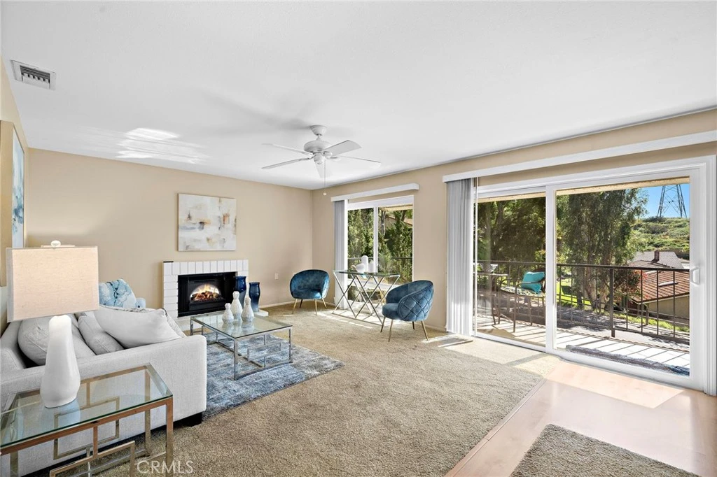 Everything you are looking for in your new Laguna Woods home: CENTRAL AIR conditioning and heat; 1 car GARAGE; inside side by side LAUNDRY; WHITE DUAL PANE WINDOWS; SMOOTH ceilings; GRANITE kitchen and bathroom counter tops; NO stairs or steps. This La Quinta floor plan offers lovely hill views in a quiet location. On entering the home there is a beautiful built in book shelf in the entry way plus a coat closet. The spacious kitchen features granite counters, roll out drawers and ample cabinet/pantry space. In the large living room there is a gorgeous fireplace and a slider to the balcony. The dining room has a large window. In the hall you find the side by side washer and dryer with extra storage. The expansive primary bedroom has a wall of mirrored closets. The sink area is separated from the shower and toilet. The second bedroom has a wall of added mirrored closets for even more storage plus the original closet is there as well! There are ceiling fans, light fixtures and custom wood trim around the windows throughout the home. There are beautiful views of the rolling hills from the balcony. Laguna Woods is one of the most prestigious 55+ communities in Orange county. In Laguna Woods you have access to: bus system around the community & to area shopping, restaurants, medical facilities; 5 pools & 4 hot tubs; golf, tennis, library, 7 clubhouse, 200+ clubs, 3 fitness centers, theater, horse back riding/stables, garden centers, basketball, card rooms, billiards, bocce ball, Emeritus classes & more!