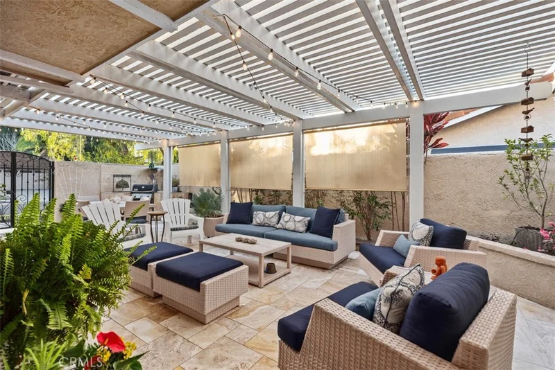 Nestled within the coveted Gate 11 community of Laguna Woods—Southern California’s premier 55+ enclave just minutes from the beaches of Laguna—this beautifully remodeled home offers refined living with thoughtful design and modern luxury. Boasting over 1,700 square feet plus a sunroom of more than 200 square feet, this residence features two spacious primary suites, each with fully remodeled bathrooms showcasing dual vanities, walk-in showers and custom closets. The open-concept kitchen is designed for entertaining, flowing seamlessly into a bright and airy living room accented by coffered ceilings and newly added transom windows that bathe the space in natural light. Throughout the home, exquisite details include laminated wood flooring, crown molding, recessed lighting, and upgraded doors and windows. The expansive sunroom—an inviting retreat with views of the neighborhood—is perfect for morning coffee, game nights, or quiet reading. A dedicated office space off the kitchen offers courtyard views and doubles as a flexible workspace. Outdoor spaces are equally impressive, with a beautifully tiled courtyard featuring a covered patio and BBQ island—ideal for dining al fresco—and a tiled back patio framed by a wrought iron fence overlooking a serene view. Accessibility has been subtly integrated with widened doorways, supporting comfortable aging in place. The finished two-car garage includes epoxy flooring, pull-down attic storage, laundry area with washer and dryer, and abundant cabinetry. Set within a secure and vibrant community with world-class amenities, this home blends comfort, elegance, and convenience— all within one of Southern California’s most desirable 55+ gated communities. The Village is near Laguna Beach and offers many great amenities such as: 27-hole golf course, tennis courts, separate pickle ball courts, five swimming pools, three fitness centers, RV storage, garden center and seven clubhouses including Clubhouse 4 offering amazing classes in art, ceramics, wood shop, jewelry-making, and sewing, and much more. Come and see your move-in ready home.