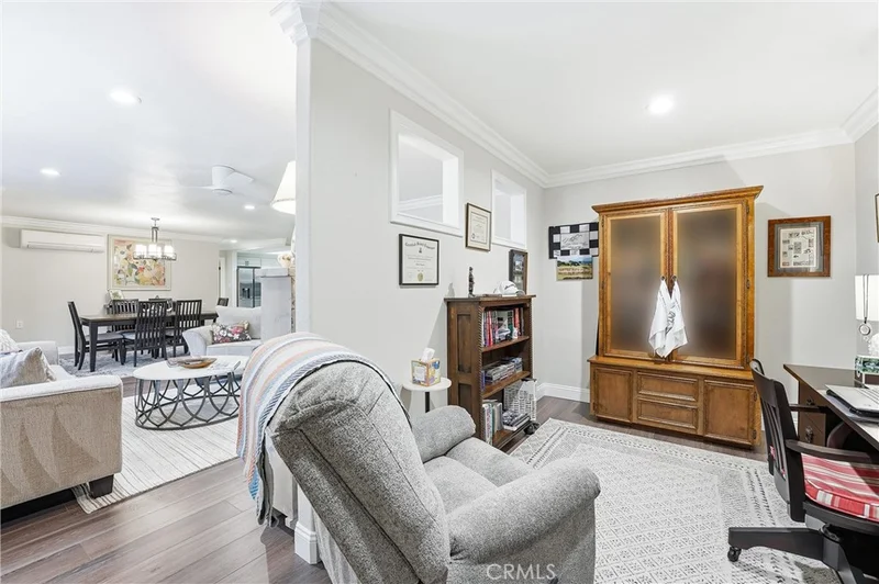 RELAXED LIVING MEETS MODERN COMFORT! Welcome to this beautifully remodeled immaculate condo ideally located in the heart of Laguna Woods. Light, bright and freshly painted throughout, this inviting residence offers a peaceful ambiance enhanced by a harmonious color palette. This thoughtfully designed floor plan welcomes you into a generous living and dining area with serene greenbelt and tree top views, complemented by a versatile semi-private flex space currently used as an office. This desirable and unique feature exclusive to this condo offers exceptional flexibility for today’s modern lifestyle. The balcony is intelligently designed with both open-air space for barbecuing, and an enclosed windowed section creating a perfect indoor-outdoor retreat. The kitchen has been tastefully updated with modern cabinetry, new refrigerator and dishwasher, and a charming built-in coffee station making everyday living both functional and enjoyable. Two spacious bedrooms feature contemporary closet doors, while both bathrooms have been remodeled in a clean stylish aesthetic. Recessed lighting and smooth ceilings throughout enhance the home’s warm and welcoming ambiance. All windows and doors are dual-paned, and each room offers individually controlled, energy-efficient split systems and/or ceiling fans, ensuring personalized comfort and cost-effective living year-round. Ideally located, this 1st floor Garden Villa condo in Villa Capri is set in one of Laguna Woods’ most sought-after locations. Conveniently close to Gate 1 and the Performing Arts Center, and within walking distance to Clubhouse 1, Mother’s Market, CVS, and the library, this home offers unmatched accessibility. The property offers ground-floor parking with storage, elevator access to all floors, and a first-floor banquet room for community gatherings and social events. Homes offering this level of comfort, convenience, and thoughtfully curated upgrades are rare. AS AN ADDED BONUS: with an accepted full-price offer at the asking price, Seller is offering to pay $5000 of the GRF facilities transfer fee at closing. Resort Style Amenities: 27-hole Championship Golf Course & 9 holes (Par 3) Golf Course, Full-Service Restaurant, 5 pools, 2 fitness centers, library, garden, walking trails, pickleball, theatre, equestrian center, art studio, tennis, lawn bowling, complimentary bus system, 7 club houses, and over 200 social clubs, and so much more!