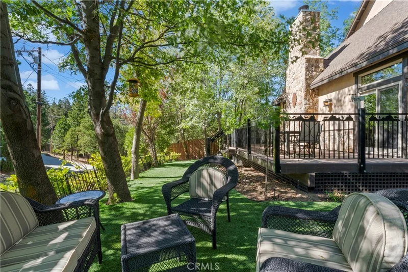 Experience the perfect blend of rugged alpine charm and refined luxury within this quintessential mountain lodge! Situated on a rare flat corner parcel offering full lake rights to private Lake Arrowhead. Custom built for the original owner in 2005, 1034 Teakwood offers a combination of easy accessibility and grand architectural scale. No detail was overlooked utilizing high quality finish work carpenters and high quality lighting fixtures/hardware throughout. Driving into the property you will appreciate hand chiseled split faced granite retaining walls and planters. An oversized 3 car garage provides ample space for vehicles and kayaks, while the dedicated level RV AND BOAT PARKING ensures yours toys are always ready for the next excursion. Reside in a low maintenance house through plaster siding, Trex decking and custom metal decking handrails. Maximum comfort provided by central forced heat and A/C plus Sellers recently installed a 24KW Generac whole house natural gas generator! The perfect property for kiddos and pups frolic within the fenced yard with artificial turf. A grand front door entrance greets you with a dramatic foyer boasting hand carved beams, banister, and rustic door/window casings. Solid wood flooring blankets the entire main living level. A spacious bedroom and full bathroom conveniently located on the entry floor! The kitchen is tastefully designed with knotty pine cabinetry, stainless appliances, double oven, custom mountain theme tiled backsplash, coffee bar, center island, and breakfast bar top. Relax fireside in the vaulted ceiling living room which leads directly onto the oversized entertaining deck(Trex). Upstairs hosts a luxurious primary en suite bedroom with floor to ceiling romantic dual sided stone fireplace, vaulted ceilings and huge walk in closet. Pamper yourself in an oversized soaking tub and enclosed glass shower beneath beautiful skylights. The upstairs is completed with the laundry room, 2 guest bedrooms, a double sink vanity bathroom. The loft serves as an office or movie room, or, frame it in to create a 5th sleeping quarters. Truly the front runner property of its price range, this property bridges the gap between a rustic escape and high end manor. Listed just in time for Summer fun the Alps of Southern California!