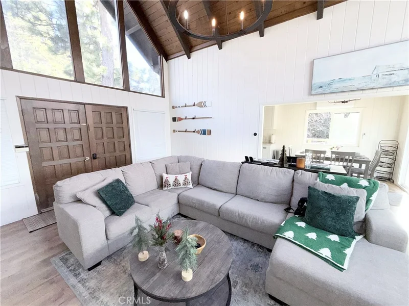 Nestled in the serene mountains near Lake Arrowhead, this charming three-bedroom, two-bath home offers the perfect blend of comfort and nature. Surrounded by towering pines and crisp mountain air, the property features an inviting open-concept living area with vaulted ceilings, a cozy stone fireplace, and large windows that fill the space with natural light. The updated kitchen boasts modern appliances and ample counter space, ideal for family meals or entertaining guests. Step out onto the spacious deck to enjoy peaceful forest views and the sounds of nature. The primary suite provides a private retreat with its own bath, while two additional bedrooms offer plenty of room for family or visitors. Just minutes from Lake Arrowhead Village, hiking trails, and year-round outdoor activities, this home is an idyllic home or full-time residence. Home to enjoy a peaceful stay. Water Rights included to Lake.