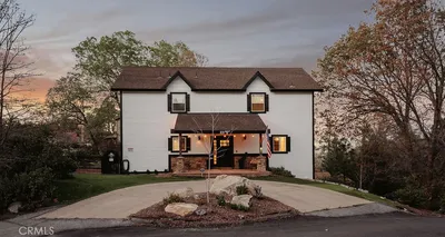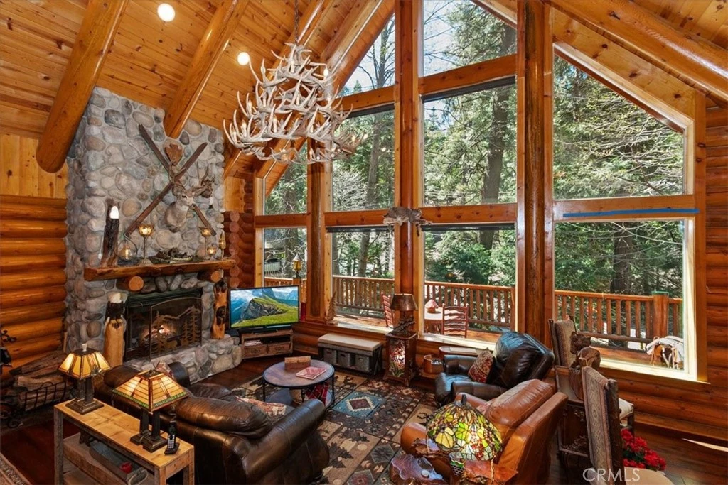 Nestled in the desirable Mountain Community of Lake Arrowhead, this custom log home with coveted lake rights offers the perfect blend of rustic charm and modern comfort. Featuring 3 bedrooms and 3 bathrooms, the home is designed for both relaxing retreats and year-round living. The spacious primary suite serves as a private sanctuary, complete with a cozy wood-burning fireplace and French doors that open onto a beautiful Cedar deck-ideal for enjoying serene forest views. Throughout the home, newer hardwood flooring adds warmth and continuity, while large double-paned windows invite in natural light and showcase the surrounding landscape. The open-concept living and dining area is anchored by a stunning, large stone fireplace, creating a welcoming gathering space for family and friends. The kitchen is thoughtfully appointed with granite and Corian countertops and stainless steel appliances, making it both functional and stylish. Additional highlights include a versatile loft, a generous 12,000 sq ft lot, and an expansive wraparound deck perfect for outdoor entertaining. Recent upgrades provide peace of mind, including a new roof, a new HVAC system, and a portable generator with a sub-panel. Set among towering Cedar and Elder Trees, with a seasonal creek running in front of the property, his home offers a tranquil mountain setting while remaining conveniently close to Lake trails, shopping, and dining. Whether you're seeking a full-time residence, vacation getaway, or investment opportunity, this property delivers a lifestyle of comfort, nature, and lasting memories.