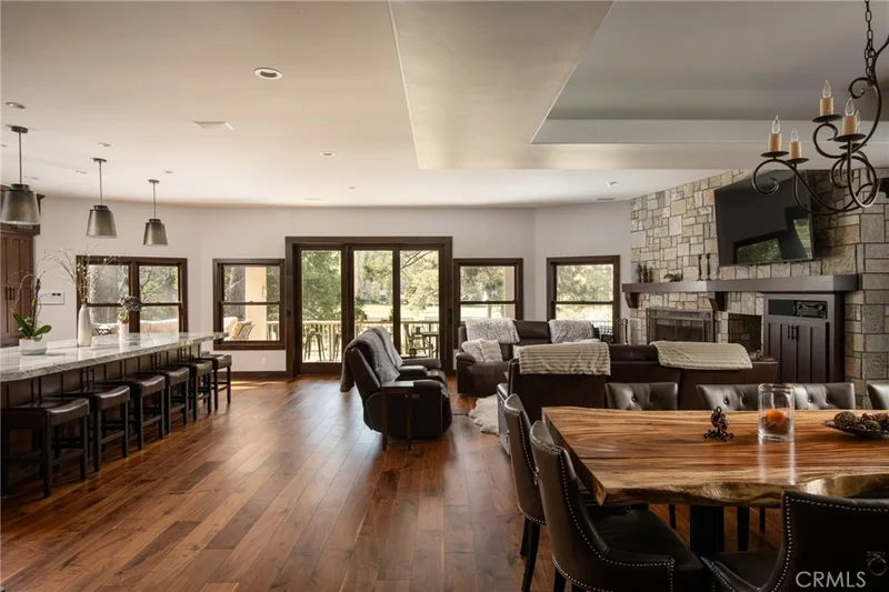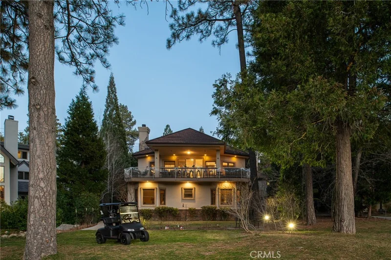 New photos with recent remodel coming soon! Welcome to the Greenside Estate– a rare level-entry luxury home perfectly situated on the 1st green of the Lake Arrowhead Country Club with sweeping views of multiple golf holes and the lake. This custom-designed residence offers 5 spacious bedrooms, 4 bathrooms, and an ideal floor plan with the primary suite, office/2nd bedroom, open-concept living room, chef’s kitchen, dining room, bar, mudroom, and laundry all on the entry level. Recently remodeled, the main living spaces are a showcase of style and comfort. Hardwood floors run throughout the great room, anchored by a stunning stone fireplace, while the gourmet kitchen features an oversized island, walk-in pantry, high-end appliances, custom cabinetry, and designer lighting. Entertain effortlessly with a bar and dining area that flow seamlessly onto waterproof decks overlooking manicured fairways and mountain scenery. Every bedroom is generously sized, offering comfort and privacy for family and guests alike. Downstairs, discover an impressive 1,300 sq ft bonus level not included in the main square footage — a true game-changer. This space includes a separate living area designed for cozy entertainment — the perfect place to host a poker night, play pool, or watch a movie by the fire. Multiple entertaining areas make it ideal for large gatherings or creating private retreats within the home. The lower level also includes a golf cart garage, gym space, and abundant storage. Practical features include a metal roof, stucco exterior for low maintenance, a rare backyard grass area, whole-home generator, and air conditioning. This property is more than just a home — it’s the complete Lake Arrowhead lifestyle package. Along with golf course frontage, a dock slip (MBM 11 Slip 14), boat, and furnishings are available for additional purchase, giving you both the prestige of country club living and direct access to the lake. Don’t miss this chance to own one of Lake Arrowhead’s premier golf course estates — schedule your private tour today and experience resort-style living at its finest.