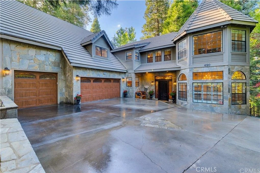 Escape the city and discover your private mountain retreat in the coveted Meadow Shores community of Lake Arrowhead. Tucked among the trees, this exclusive estate offers the perfect blend of privacy, space, and modern convenience—ideal for those looking to trade traffic and noise for fresh air and lake living. Walk to the lake and half double dock with a boat lift! Designed with easy mountain living in mind, the home features level entry and a flowing floor plan that opens to expansive decks—perfect for morning coffee, evening sunsets, and entertaining under the pines. The spacious kitchen anchors the home with an oversized cooking island, breakfast bar, recipe desk, and breakfast nook, all connecting seamlessly to the great room with a real wood fireplace and indoor-outdoor access. The primary suite is a true retreat, set apart for privacy with vaulted ceilings, its own private deck, a dual-sided fireplace, sitting area, and a luxurious bath with soaking tub, steam shower, vanity, and large walk-in closet. Additional flexible living spaces include a media/game room/library with fireplace and adjoining office, plus two more bedrooms and a full bath—perfect for guests, working from home, or multi-family living. Outside, the property is designed for both relaxation and recreation with fenced outdoor spaces ideal for children and pets, a backyard sport court, and a multi-zone irrigation system to maintain the landscaped grounds. The garage includes a 220 breaker ready for EV charging, and the home is equipped with a full-house generator—highly sought-after features for mountain living and peace of mind. There is ample parking for multiple vehicles, a boat, trailer, or golf cart, plus plenty of storage. Walk to the lake and your double dock with boat lift in wind-protected Meadow Bay, completing the ultimate mountain lifestyle property for full-time living or a luxury escape from the city.