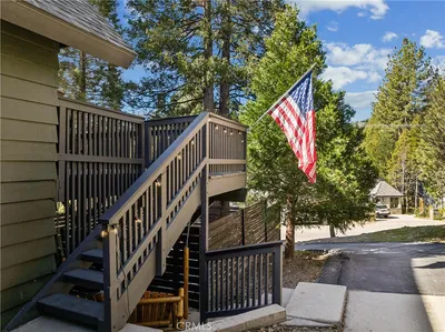 Premier 1st Tier Golf Course Mountain Home with Lake Rights!! Live the ultimate mountain lifestyle! This spectacular updated home is just a short walk to Grass Valley Lake, a quick golf cart ride to Lake Arrowhead Country Club, and includes lake rights. Updated in 2022, the home features 4 bedrooms, 3.5 bathrooms, and approximately 3,253 sq. ft., including a loft and bonus room above the garage. Vaulted wood beam ceilings and abundant natural light highlight the open kitchen, dining, and living area. The kitchen is upgraded with granite countertops and stainless-steel appliances, flowing seamlessly to the living room with a stone wood-burning fireplace and custom barn wood mantel. The dining area includes a custom bench seat and table. Two primary suites on the main and third floors feature attached bathrooms with granite countertops, soft-close cabinetry, and generous closets. The main floor includes a laundry room with washer and dryer. Entertainment options abound with two game rooms: the first-floor room has a TV, fireplace, wet bar, mini fridge, pool table, bedroom, and full bath; the bonus room above the garage. Attached two-car garage with golf cart bay, plus multiple driveways for cars, RVs, or boats. Situated on a private corner lot, the home offers three decks with patio furniture, a recently painted exterior, and a gated spa for relaxation. Sleeps 12+, with kid-friendly features including a secret passageway from the third-floor loft to the bonus room and a custom playhouse with wraparound deck. The bottom floor could serve as a separate suite with a built-in fridge, wet bar, and private entrance. Modern amenities, generous living space, and a prime location with lake rights and close proximity to the golf course make this property ideal as a permanent residence or mountain vacation retreat!