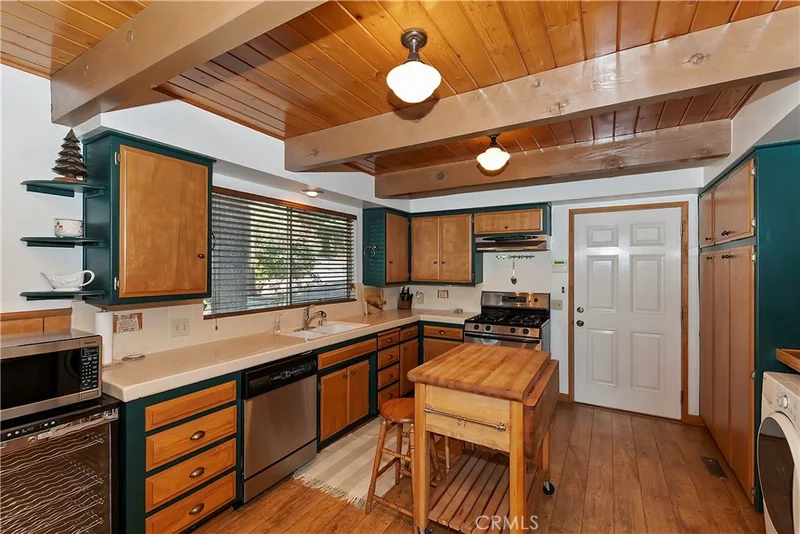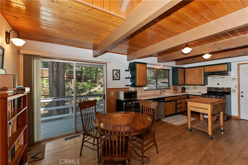 Beamed Ceilings, Cathedral Ceilings, Eat In Kitchen, Furnished, High Ceilings, Living Room Deck Attached, Open Floorplan, Bedroom On Main Level, Galley Kitchen, Main Level Primary