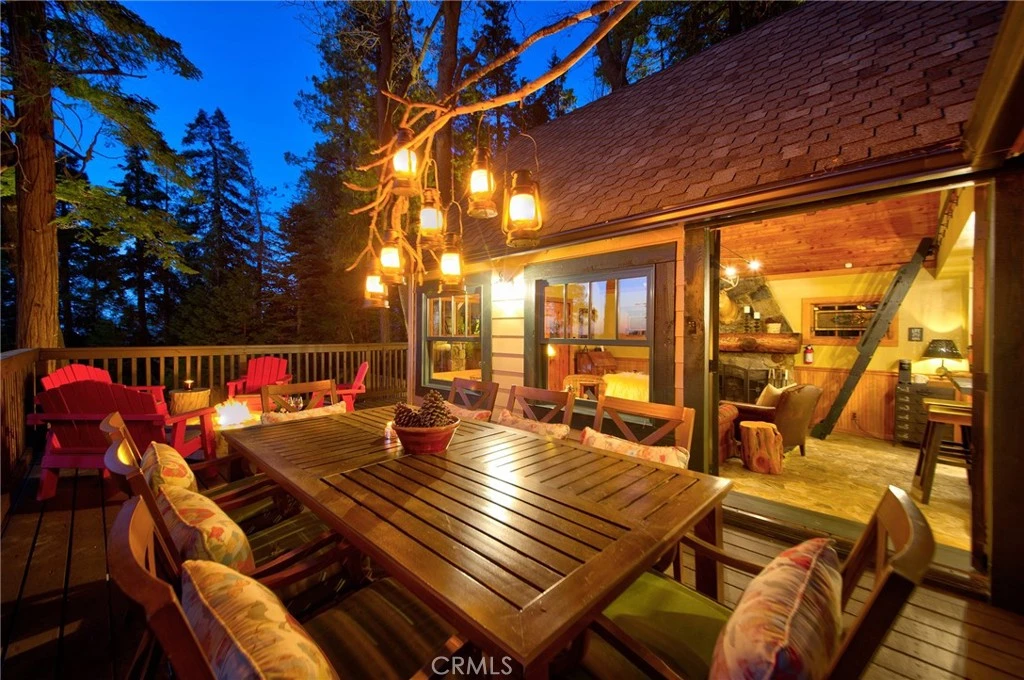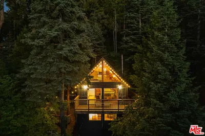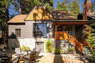 Step into a piece of Lake Arrowhead history with this charming and storied 1924 cabin, rumored to have once served as the hideout of a local bootlegger during the days of Prohibition ~ Today, this one-of-a-kind retreat has been thoughtfully refurbished in 2021, blending historic charm with stylish modern updates. Tucked away on the remote and exclusive southeast side of Lake Arrowhead, this cozy cabin offers a rare sense of seclusion while still being within reach of everything the mountain has to offer ~ You’ll find approximately 1,000 square feet of gated deck space designed for outdoor living and entertaining ~ Enjoy the year-round hot tub spa, BBQ area, and fire pit while taking in breathtaking lake views and unforgettable sunset skies ~ The upper deck offers one of the most captivating vantage points of the lake, while fall brings a spectacular display as nearby maple trees turn vibrant shades of gold and crimson ~ On the 4th of July the night sky will come alive ~ Inside, the architect-owner infused the cabin with thoughtful design elements that complement its historic roots with a rustic tin ceiling in the kitchen, a farmhouse sink, and modern industrial lighting create a warm yet refined mountain aesthetic ~ The home is adorned with local mountain artwork, vintage photographs, and curated antiques that add character throughout ~ Relax and unwind in the copper clawfoot tub beneath a large skylight, where you can soak while gazing up at the treetops and star lit skies ~ In warmer months, enjoy the private outdoor cedar shower surrounded by pines for a true mountain retreat experience ~ Evenings are best spent curled up beside the original stone fireplace, complete with an oak tree trunk mantle ~ Whether you’re searching for a romantic getaway, a peaceful mountain escape, successful investment, or a unique property rich with history and character, this special cabin offers the perfect opportunity to make it your own and create memories for generations to come.