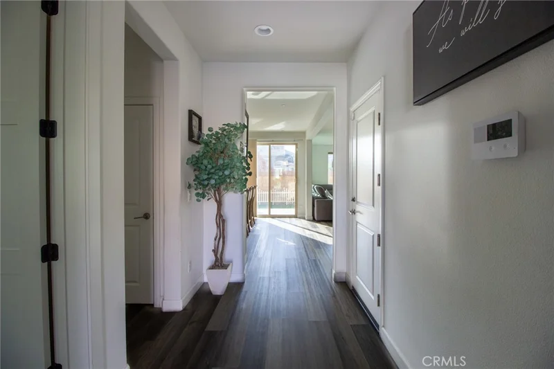 A Spanish-style facade welcomes you into Aura at Westridge, a gated community designed for comfort, light, and connection. Built by award-winning Pardee Homes, this residence showcases what is arguably one of the best floor plans in the neighborhood. The arched entry opens to rich oak flooring that flows throughout the main level. Just off the entry is a versatile main-floor bedroom or office, a bathroom, and a convenient coat closet—ideal for guests or a home office. The heart of the home is the expansive great room, seamlessly connected to the kitchen and dining area and filled with natural light. The gourmet kitchen is thoughtfully appointed with maple cabinetry, granite countertops, a six-inch backsplash, stainless steel appliances, recessed lighting, USB charging ports, a hidden waste drawer, and a Delta pull-out faucet. A large stainless steel sink and a generous (7) seven-foot center island—perfect for gathering and entertaining—complete the space. A pantry adds extra storage, while the open layout provides wide views throughout the living areas. Upstairs, textured carpet in a calming linen tone runs throughout the second floor. The hallway leads to a laundry room, three secondary bedrooms, and a full bathroom. The private primary suite is designed for relaxation and easily accommodates a large bed and furniture. The spa-inspired bath features quartz countertops, dual vanities, custom maple cabinetry, a frameless glass shower enclosure, and a soaking tub, along with two spacious walk-in closets. The backyard offers a low-maintenance retreat with a concrete patio, turf lawn, and river rock accents. Paid-off solar enhances the home’s energy efficiency, along with attic insulation, low-VOC paint, Delta WaterSense faucets, 15-SEER air conditioning, Low-E windows, and a tankless water heater. Community amenities include a beach-entry pool, children’s pool, jacuzzi spa, basketball court, playground, shade structures, barbecue area, fire pit, and private restrooms. Enjoy proximity to several highly rated dining options in Downtown Lake Elsinore. Aura at Westridge is where comfort, efficiency, and community come together. (4) Four bedrooms upstairs plus the downstairs as a 5th bedroom. We also have an electric car charger in the garage.
