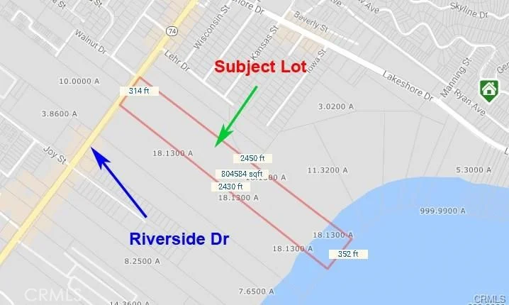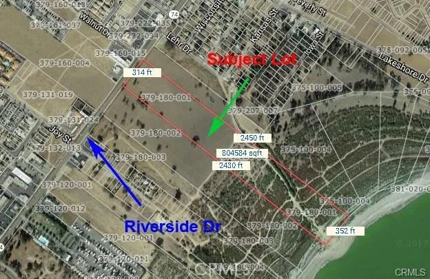 Excellent investment opportunity to build on this prime 18 acres LAKE FRONT land in Lake Elsinore- one of the fastest growing cities in California. Flat grassy land with huge Riverside Drive frontage at major intersections. All utilities in the street. Zoned for Commercial/Mixed-use. BUYER & BUYER'S AGENT TO VERIFY ALL INFO WITH CITY.