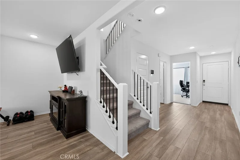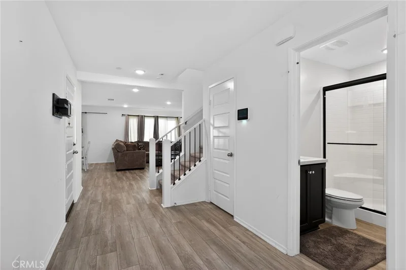 Welcome to a beautifully appointed 4-bedroom, 3-bath home nestled within the sought-after gated Westlake community of Lake Elsinore. Built in 2021 and offering approximately 2,282 square feet, this two-story residence blends modern design, energy efficiency, and everyday functionality. The open-concept main level creates seamless flow between the kitchen, dining, and living areas, ideal for both entertaining and comfortable daily living. The kitchen features granite countertops, stainless steel appliances, and ample cabinetry, while large windows fill the space with natural light. A main level bedroom and bath provide flexibility for guests, multigenerational living, or a home office. Upstairs, the spacious primary suite offers a private retreat with dual walk-in closets, and an en-suite bath complete with dual sinks and large walk-in shower with built in bench. Additional bedrooms are generously sized and thoughtfully positioned for privacy. Energy conscious features include an expanded 18 panel solar setup, and a recently serviced HVAC system, offering increased energy efficiency and potential utility savings. The finished 2-car garage includes EV charging capability. Step outside to a low-maintenance backyard with artificial turf, covered patio, complete with integrated lighting and ceiling fan, perfect for outdoor dining or relaxing evenings. Residents of Westlake enjoy resort-style amenities including a community pool, spa, park, barbecue areas, playground, and gated security. Just minutes from the lake, conveniently near shopping, dining, schools, and major commuter routes, this move-in-ready home offers modern living in one of Lake Elsinore’s most desirable communities. Buyer and buyer’s agent to verify all information including square footage, HOA details, assessments, solar lease terms, and permits.