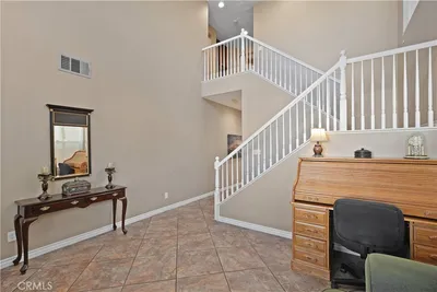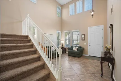 BACK ON THE MARKET!!! Experience the perfect blend of sophisticated design and modern versatility in this beautifully appointed residence, located in the highly sought-after community of Canyon Hills. Offering a masterfully planned 5-bedroom, 3-bathroom layout ---this home provides exceptional flexibility, including a coveted main-floor bedroom and full bath; ideal for multigenerational living, a private guest wing, or a professional home office. Upon entry, you are greeted by soaring ceilings and a dramatic open-to-below balcony that floods the home with natural light, creating an immediate sense of grandeur. The residence flows seamlessly from the formal living and dining areas into an expansive family room and chef’s kitchen, making the home perfectly suited for both intimate daily living and large-scale entertaining. The kitchen serves as the heart of the home, anchored by rich walnut-toned cabinetry, premium stainless steel appliances, and durable granite countertops that offer both depth and style. The upper level featuring a spacious primary suite bathed in warm natural light, alongside 3 additional well-proportioned bedrooms and a full secondary bathroom. Significant recent enhancements elevate the property’s value, including professional landscaping with fresh sod in both the front and rear yards, as well as new LED lighting throughout for enhanced energy efficiency. Newer HVAC and integrated solar panels further modernize the home by helping to offset energy costs. Beyond the property lines, the Canyon Hills lifestyle offers unparalleled amenities, including a state-of-the-art sports annex, splash pads, private clubhouses, resort-style pools, and miles of scenic trails. Ideally located near distinguished schools like Cottonwood Canyon and Herk Bouris Elementary, and offering convenient access to the I-15 corridor, this home puts the best of Lake Elsinore and nearby Menifee at your doorstep. Discover the rare opportunity to own a meticulously maintained home in one of the region's most vibrant and growing communities.