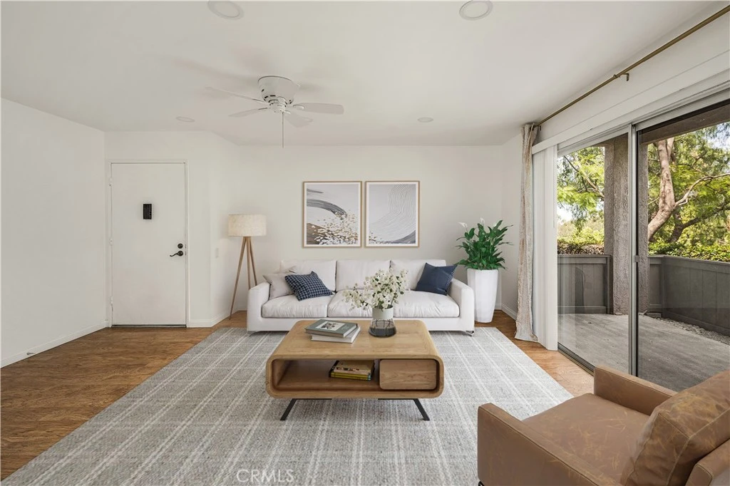 Welcome to a private downstairs corner unit in the Benchmark Villas community, ideally located in front of a beautiful Rimgate park—offering the best setting in the entire complex. This spacious home features three generous bedrooms and two bathrooms. Inside, you’ll enjoy a beautifully upgraded kitchen with granite countertops, recessed lighting throughout, new paint, new ceiling fans in every room, upgraded showers, and upgraded vinyl flooring throughout. Additional highlights include an inside laundry area and a storage closet in the patio. Enjoy a large ,peaceful patio with serene park views-a perfect spot to relax. The HOA covers Water and trash and you are just minutes from the 5 and 133 freeway and the best shoppings and schools.(Note:The staging is virtual)