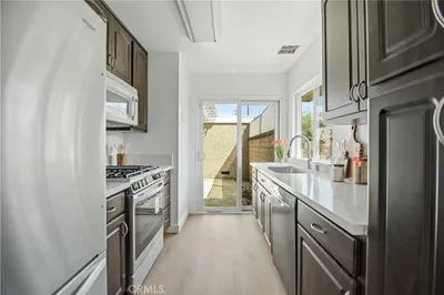 This completely remodeled, turnkey 2-bedroom, 1-bathroom corner townhome delivers 912 sq ft of modern, low-maintenance living with the two most sought-after features in Lake Forest: a private attached 2-car garage plus one additional assigned parking space — giving you three total parking spots right at your door. As a true corner unit with only one shared wall, this home feels more like a detached single-family residence than a typical attached townhome — delivering exceptional privacy, extra light, and a spacious open feel that sets it apart from every other unit in the complex. The ultra-low HOA of just $350/month is the lowest in all of Lake Forest, keeping your monthly costs minimal while the association handles exterior maintenance. This combination of private 2-car attached garage, extra parking, corner-unit privacy, and rock-bottom HOA is genuinely rare and almost impossible to find at this price point. Inside, every detail has been upgraded to today’s standards. The bright galley kitchen features sleek dark wood cabinetry, crisp white quartz countertops, stainless-steel appliances (gas range, oven, dishwasher, refrigerator), built-in microwave, and durable wood-look flooring. Recessed lighting, neutral finishes, and an updated bathroom complete the move-in-ready interior. A sliding glass door opens to your private fenced patio — perfect for morning coffee or evening unwinding. This fully remodeled corner townhome is located in a prime Lake Forest neighborhood, just minutes from shopping, dining, parks, top-rated schools, and easy access to the 5, 405, and 133 freeways. If you’ve been searching for a turnkey 2-bedroom with a private attached 2-car garage, extra parking, true corner-unit privacy, and the lowest HOA in town — this is the one. Don’t miss it. A true standout in Lake Forest, CA — schedule your private showing today!