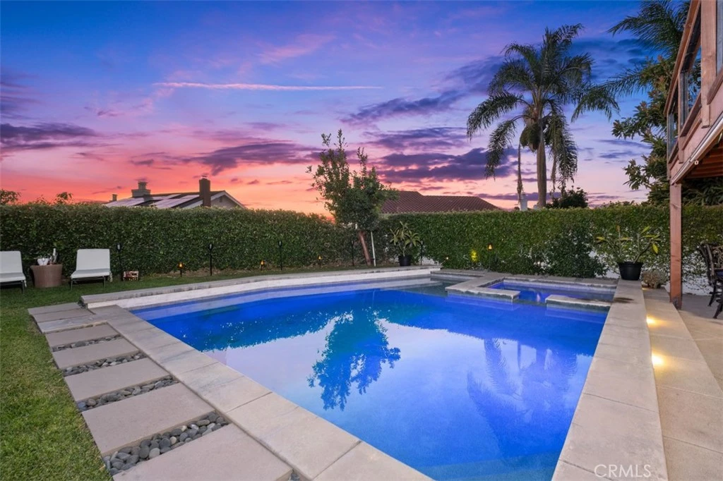 Exceptional, One-of-a-Kind Home! Designed for ultimate indoor-outdoor living & entertaining, this beautifully upgraded residence is ideally situated at the end of a quiet cul-de-sac on an expansive 7,500 sq. ft. private lot in one of the best locations in Lake Forest South. The resort-style backyard, fully remodeled in 2020, is the true centerpiece of the property & features a saltwater pool & spa with smartphone-controlled heating, lighting, & auto-fill system. A covered patio with outdoor kitchen, built-in barbecue, roller shades, & TV creates the perfect setting for gatherings. Lush landscaping & multiple seating areas provide privacy & a tranquil atmosphere. Inside, the home showcases soaring two-story ceilings & an elegant wrought-iron staircase, creating an open & inviting ambiance. The formal living room features a sunken seating area, two-sided fireplace, flowing seamlessly into the formal dining room with access to outdoor entertaining spaces. A separate family room with a built-in media center & fireplace offers more comfort for everyday living, while a main-level bonus room provides flexibility for a home office, library, or bedroom. The remodeled kitchen overlooks the serene backyard & is equipped with granite countertops, a 5-burner gas cooktop, double oven, new dishwasher, & microwave/convection oven. Upstairs, the expansive primary suite features vaulted ceilings, a fireplace, & a private balcony with pool & sunset views. The primary bathroom includes a remodeled step-in shower with frameless glass enclosure. All three bedrooms offer walk-in closets. Additional upgrades include owned solar(2018) & newer roof, whole-house repiping (2020), new HVAC system (2017), new sliding doors & windows, remodeled kids’ bathroom with frameless door, luxury vinyl plank flooring, fresh interior paint upstairs, updated lighting & chandeliers, new high-quality granite in the kitchen & laundry room, Redesigned & remodeled side yard & Powder room(all in 2023). Conveniently located within walking distance to the lake & the Sun & Sail Club. HOA amenities include a 25-yard lap pool, diving & exercise pool, spa; children’s wading pool; fitness center; six tennis courts; twelve pickleball courts; basketball half-courts; sand volleyball; a Tot Lot playground; Youth Center; clubhouse; picnic & BBQ areas; & an amphitheater. No Mello-Roos & low HOA dues. Just minutes from freeways, Irvine Spectrum, shopping, dining, & local schools!
