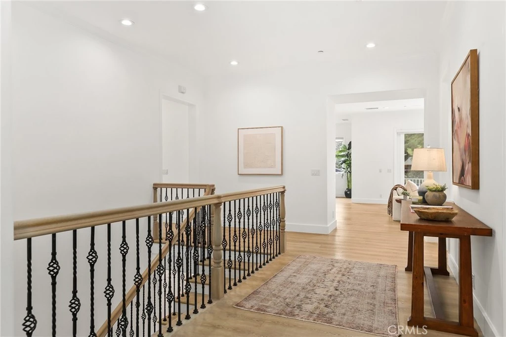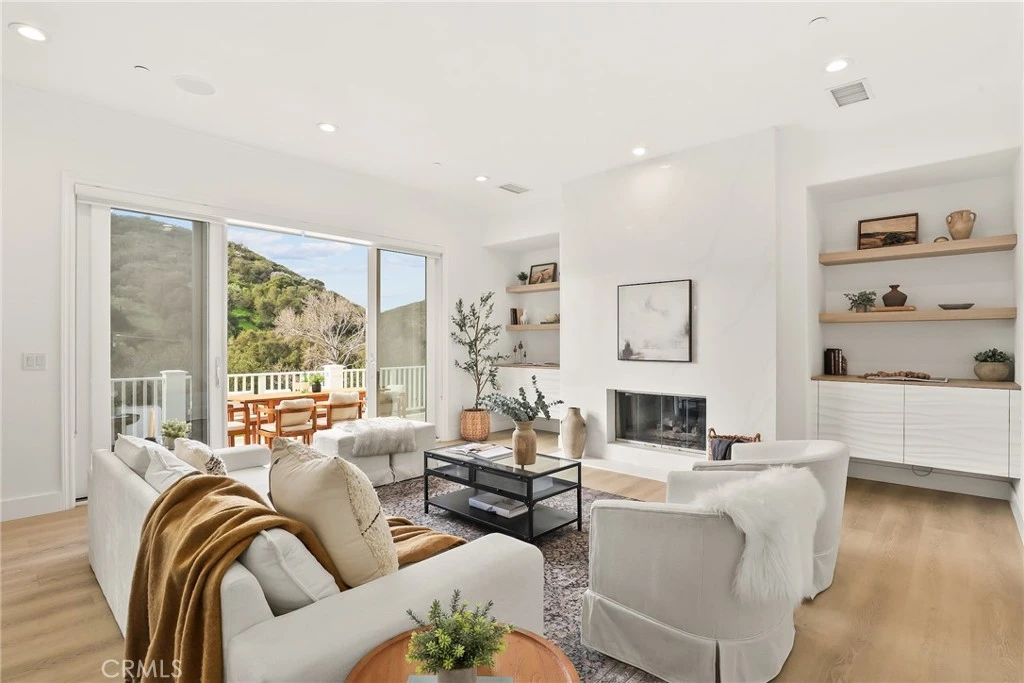 Located on Lake Sherwood with mountain views and the sun reflecting off the water from nearly every window, this stunning lakefront estate offers elegant interiors, seamless indoor-outdoor living, direct lake access, a private dock, and a peaceful lakeside lawn. A formal entry opens to thoughtfully curated living spaces including a main level bedroom with fireplace and full bath ideal for guests or as an office, formal dining room, and expansive living room with lake views and sliding glass doors that open to the al fresco dining balcony. The chef’s kitchen features dual center islands, breakfast alcove, and is fully open to the family room creating effortless flow for everyday living and entertaining. Wide plank light wood floors and designer finishes define the main level. Downstairs unfolds as a beautifully curated retreat level, anchored by the primary suite with fireplace, sliding glass doors to a covered patio, generous walk in closet, and a spa inspired bath. Three additional bedrooms each open to the grounds through sliding glass doors, enhancing the connection to the tranquil backyard with pool, spa, outdoor kitchen, mature landscaping, and sweeping mountain and lake views. Take steps down to the expansive lakefront lawn and private dock for boating and paddle boarding. Additional highlights include a large laundry room on the bedroom level, three car garage, recently remodeled throughout, custom closets in every room and close proximity to Sherwood Country Club, Westlake Village, and Malibu. A rare opportunity to experience refined lakefront living.