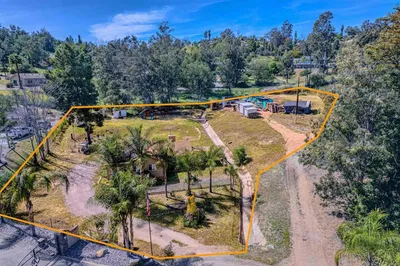 Tucked away at the end of a private cul-de-sac in desirable Eucalyptus Hills, this rare 1.22-acre property offers a unique blend of rustic charm and future potential. Surrounded by larger, modern homes (all built in 2012 or later), this is the final opportunity to build on one of the most coveted lots in the area. At the heart of the property sits an enchanting 3-bedroom log cabin, full of warmth and character. Step onto the inviting front porch and you’ll feel transported to a simpler time. Inside, authentic log walls and a classic cast iron pot belly stove create a cozy, storybook setting, perfect for cool evenings and relaxed country living. Upgraded about 8-years ago was a roof, paint, flooring, and improved leach lines. The central A/C system was replaced in 2025, plus 17 fully paid-off solar panels (valued at $27K) add efficiency and long-term savings. The true magic lies in the land. The lot is positioned for a custom estate home on the upper portion, with the existing cabin becoming an ADU, guest retreat, or income-producing rental. Whether you’re looking to build your dream home, create a multi-generational compound, or simply enjoy the peaceful lifestyle this property offers, this is a one-of-a-kind opportunity you don’t want to miss.