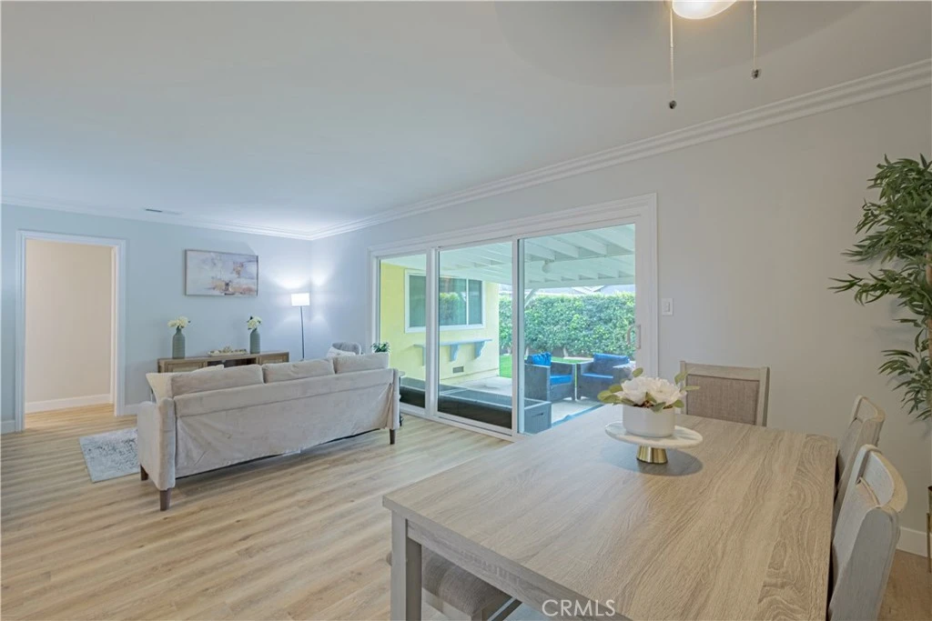 Welcome to this beautifully updated Lakewood home located in a highly desirable, family-friendly neighborhood! Featuring 3 bedrooms and 1.5 bathrooms across approximately 1,228 square feet, this move-in ready property blends modern upgrades with everyday comfort and functionality. Step inside to a bright and refreshed interior showcasing fresh paint, new laminate flooring, and new window blinds throughout, creating a clean and inviting atmosphere. The fully updated kitchen features brand-new cabinetry paired with elegant quartz countertops, offering both style and practicality for daily living and entertaining. Enjoy year-round comfort with central air conditioning and heating, along with dual-pane windows and a sliding glass door designed for enhanced noise reduction and insulation. The spacious primary bedroom includes a walk-in closet, providing ample storage and convenience. A dedicated laundry room with abundant cabinetry adds even more functional storage space. Step outside to a private backyard retreat featuring a large patio—perfect for relaxing or hosting gatherings—along with a tall privacy hedge that creates a peaceful and secluded setting. Ideally located between the Lakewood Center Mall and Los Cerritos Center, this home offers easy access to top shopping, dining, and entertainment. Situated on a quiet, kid-friendly street with a strong sense of community and great neighbors, this is a place you’ll truly feel at home. A perfect blend of upgrades, location, and lifestyle—don’t miss this opportunity!