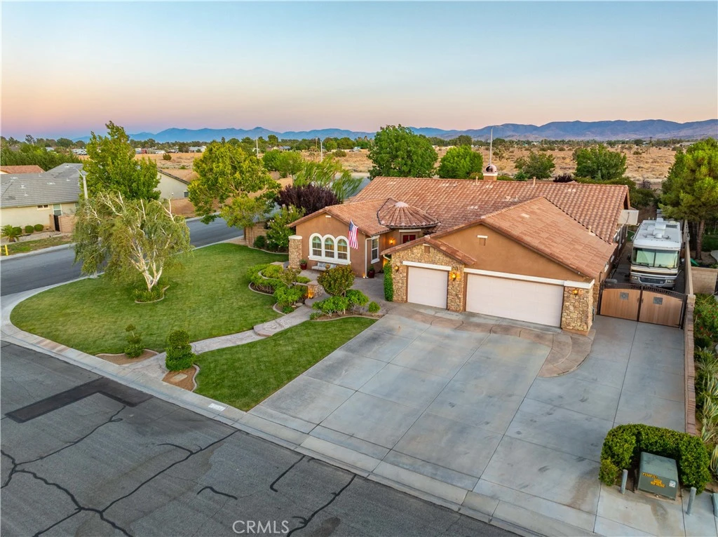 ***LIVE BEAUTIFULLY*** Elegant 5-Bedroom Estate with Luxurious Upgrades & Exceptional Features - Nearly 4,000 Sq Ft. Welcome to this expansive and meticulously upgraded 5-bedroom, 3.5-bathroom estate, offering nearly 4,000 sq ft of thoughtfully designed living space. Nestled on a generously sized lot, this property perfectly blends elegance, functionality, and comfort—ideal for growing families, entertainers, or those seeking room to roam. Step inside and be greeted by new plush carpeting in the living room, dining room, and family room, creating a warm and welcoming ambiance. The chef's kitchen is a true culinary haven, featuring porcelain countertops, double ovens, a sleek stovetop pot filler, and an abundance of space for entertaining. The adjacent laundry room is enhanced with additional overhead cabinetry for optimal organization. Enjoy year-round comfort with a ducted, thermostat-controlled swamp cooler, and ceiling fans in all bedrooms—plus one in the luxurious master bathroom, which also showcases upgraded tile and travertine solid surface countertops, echoing the refined finishes found in all bathrooms throughout the home. Tech-savvy and holiday-ready, the exterior boasts numerous outlets at the base and eaves, controlled by a separate switch—perfect for holiday lighting displays. The 5-channel ceiling surround sound system elevates your movie nights and gatherings to the next level. The spacious 3-car garage offers extra-deep bays, attic storage with a pull-down ladder, added lighting and outlets, and a stamped concrete walkway and porch for extra curb appeal. Oversized RV parking easily accommodates large rigs with slide-outs extended—ideal for adventure lovers or additional guests. This rare property brings together high-end upgrades, abundant space, and thoughtful design in every detail. Don't miss the opportunity to own this exceptional home that truly has it all!