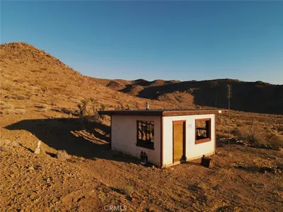 1955 HOMESTEAD RECREATIONAL CABIN: Rural location, surrounded by wilderness, yet all the modern conveniences, including Water Meter and SCE Electric Power, hot-water shower & bathroom – all updated, contemporary, modern. Ductless min-split AC/Heater for instant cool air in the summer and warm air in winter. Includes TWO PARCELS: 5-Acre Lot + additional 2.5-Acre Lot, for a total of 7.5-Acres. Cabin has new fence. Bordering the east boundary of this property stands more than 500-acres of government-owned preserved BLM land. Walk from front door of cabin to front door of The Integratron without ever crossing private property; in fact, you can walk all the way to Giant Rock without ever stepping foot on private property. Sit on the front porch, sipping morning coffee and watch the sunrise over iconic Goat Mountain. Hike from house to summit after breakfast. Immerse yourself into the Landers Experience. No reason to drive to Joshua Tree National Park with all this wilderness within walking distance of your front door. Rinse off and refresh with a warm shower after returning home. Dark sky galaxy gazing galore. Green line demarcating boundary are approximate, as property has not been surveyed. Rare opportunity for the discerning adventurist. For those interested in developing, County allows for one main house (SFR) and one guest house (ADU) per parcel; in this case one could build 4 permitted dwellings. Cash Purchase. No Seller Carry.