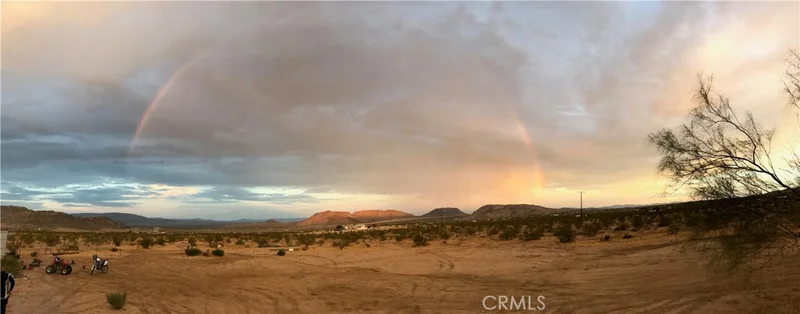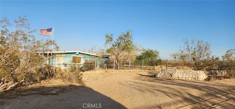 Price-adjusted and off-road vehicles and furniture are also available; call me for the details. Seize this incredible opportunity to create your ideal desert sanctuary near Giant Rock, the Johnson Valley HOV area, and Joshua Tree National Park. This home has a main bedroom and two additional bunk bedrooms for flexibility and privacy. The home boasts breathtaking 360-degree views, inviting you to immerse yourself in peaceful desert surroundings. The large 5-acre parcel has room for the largest of dreams. Smartly designed vacation rentals are in the area, and due to its location, year-round activities are common. A stackable washer and dryer, an outdoor structure with multiple uses, many fence posts, and a large storage container are included. Imagine evenings under a sky full of stars, where you feel you can touch. The daily sunrises and sunsets are works of art. It's no wonder artists and musicians find inspiration here. Leave city life behind for the tranquility and inspiration the high desert offers. Come and stay, come and play!