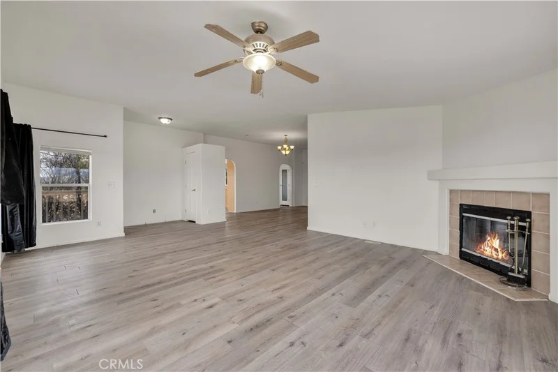 Spacious 3-bedroom, 2-bath home on 5 flat, usable acres, offering over 2,200 square feet of living space and a highly functional floor plan. As you arrive, you’ll immediately notice the variety of mature trees and palm trees that have been thoughtfully planted throughout the property, along with true 360-degree panoramic views in every direction. Step inside and enjoy the light, bright, and airy feel of the home. The very large living room features a wood-burning fireplace, vaulted ceilings, and multiple windows that perfectly frame the surrounding views. The oversized dining room easily accommodates a large table and gatherings and flows seamlessly into the spacious kitchen, which offers abundant cabinet and counter space along with a pantry. Just off the kitchen is an exceptionally large breakfast nook, comparable in size to many full dining rooms. This space includes a sliding glass door to an east-facing patio, enclosed with privacy fencing, making it the perfect spot to enjoy morning coffee while watching the sunrise. All three bedrooms are generously sized, with the primary suite standing out as a true retreat. The primary bedroom is exceptionally large and features two full walk-in closets plus an additional office or flex room, ideal for a home office, nursery, library, or creative space. The ensuite bathroom includes dual sinks, a walk-in shower, and a separate soaking tub. The guest bathroom is conveniently located and features a shower/tub combo. Additional features include an indoor laundry room with access to the backyard. Outside, you’ll find a large pergola and deck overlooking stunning views of the snow-capped San Jacinto Mountains, creating an ideal setting for outdoor entertaining or quiet relaxation. This property offers incredible value with its size, acreage, views, and close proximity to pavement, making access easy without long dirt road travel. A rare opportunity to own a large home on five acres with space, views, and versatility.