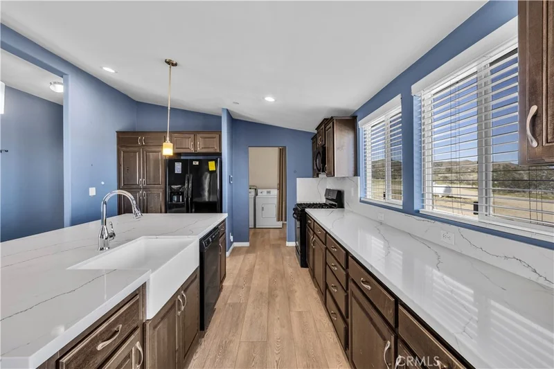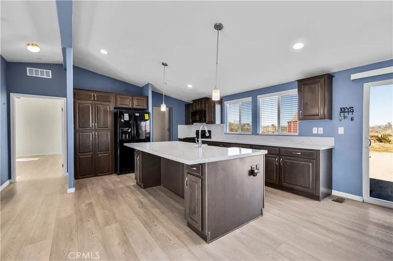 This 2019 manufactured home is situated on a spacious 5-acre lot with a large portion enclosed by a 6-foot chain-link fence and a solar-powered electric gate for both convenience and security. This property is incredibly well-equipped, featuring multiple newer Tuff Sheds for storage, a large metal building with two roll-up doors ideal for workshop use or hobbies, and a propane-powered Generac generator wired to support the home during power outages. Inside, you’ll be impressed by the open-concept floor plan with tall vaulted ceilings, luxury vinyl plank flooring throughout, and large windows that flood the space with natural light while capturing stunning views of the surrounding landscape. The kitchen is the heart of the home and features a massive center island with quartz countertops, ample cabinet storage, and an extra-large walk-in pantry. This is a split floor plan design with the primary suite on one side of the home for maximum privacy. The primary suite is incredibly spacious and includes a huge walk-in closet and a beautifully designed ensuite bathroom with dual sinks, a walk-in shower, and additional built-in storage. On the opposite side of the home, there are two additional well-sized bedrooms and a second full bathroom, finished with cohesive modern touches consistent throughout the home. Being a newer home, it is built for energy efficiency and long-term reliability. With modern systems including roofing, HVAC, plumbing, electrical, and mini-split systems throughout, this home is designed for low maintenance and long-term comfort. This property offers the ideal balance of privacy, space, and functionality with room to grow and enjoy the beauty of the desert. Schedule your private showing today.