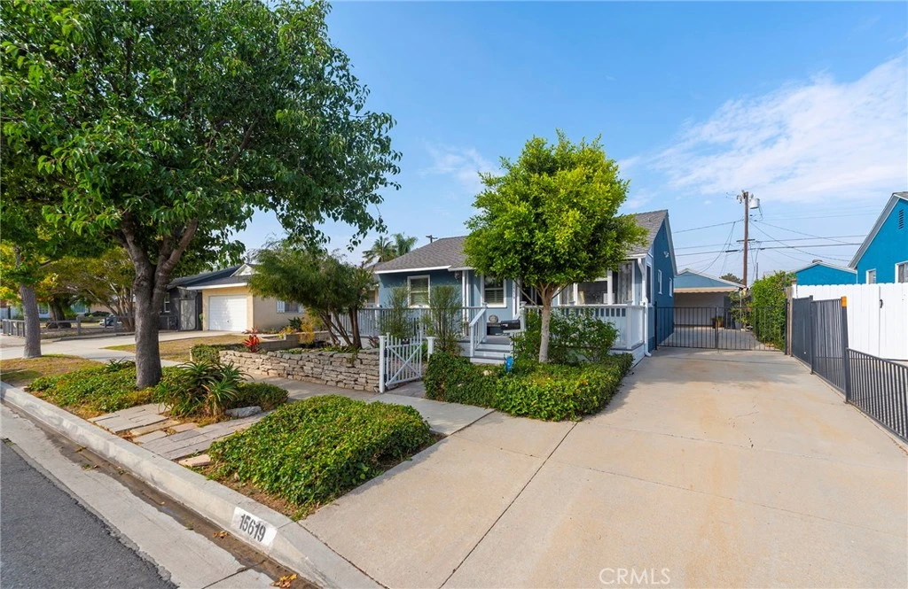 Welcome to this beautiful 4-bedroom, 2-bath home located in the desirable and prestigious El Camino Village of Lawndale. From the moment you arrive, you’re greeted by an expansive deck-style front porch perfect for relaxing and enjoying the neighborhood charm. The thoughtfully designed interior showcases a warm yet sophisticated ambiance, featuring an open formal dining area and a serene sitting space anchored by a beautiful fireplace with a classic mantel. Expansive sliding glass doors create a seamless indoor-outdoor living experience, opening to a tranquil garden retreat style back yard ideal for entertaining or peaceful moments of escape. The bright sunny bistro style galley kitchen is both charming and functional, offering abundant cabinetry, timeless appeal, and a delightful breakfast nook. Generously sized bedrooms provide comfort and versatility, while the tastefully decorated bathrooms reflect quality finishes and understated elegance. Custom shutters throughout the home add an elevated touch of style and privacy. A discreet laundry area is conveniently tucked away in its own closet area off the kitchen. A convenient secondary rear entrance providing effortless access from the long extended driveway. The serene backyard oasis leads to a detached two-car garage, completing this impeccably maintained property. Perfectly situated near desirable schools, shopping, El Camino College, and Alondra Golf Course, this exceptional home offers a rare blend of luxury, comfort, and prime location. An extraordinary opportunity not to be missed!