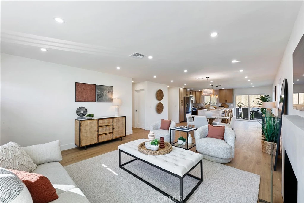 Tucked away on a quiet cul-de-sac in the sought after El Camino Village neighborhood, with underground utilities and an elementary school rating of 8/10 on greatschools.org, this fully remodeled home feels brand new, thanks to a meticulous renovation. From the new siding and paint, to the sleek skim coat walls, everything has been carefully considered. Micro cement adds a sophisticated and modern detail to the fireplace surround, the front exterior window trim, and the primary bathroom. Dual-paned windows fill the space with natural light, while stylish light fixtures and luxury vinyl flooring complete the look. The chef’s kitchen is as functional as it is beautiful. The spacious center island, topped with leather-finished quartz countertops is perfect for casual breakfasts or can be used as a buffet station at your next gathering. The open floor plan seamlessly connects the kitchen to the living and dining areas, making it perfect for entertaining. This home is built for the years to come, featuring a brand-new 200-amp solar-ready electrical panel and is also prepped and ready to support an electric car charger. The recently installed tankless water heater and new copper pipes add efficiency and reliability. The primary suite is a retreat of its own, boasting a walk-in closet, a Zen-like bathroom with timeless finishes, and a sliding door that opens to the private backyard. The backyard is ready for everything from quiet mornings to lively festivities and features low-maintenance turf, privacy fencing, and freshly poured concrete. Boasting skylights in two of the three bathrooms, generously sized bedrooms, and impeccable design touches throughout, this home elegantly combines style and comfort.