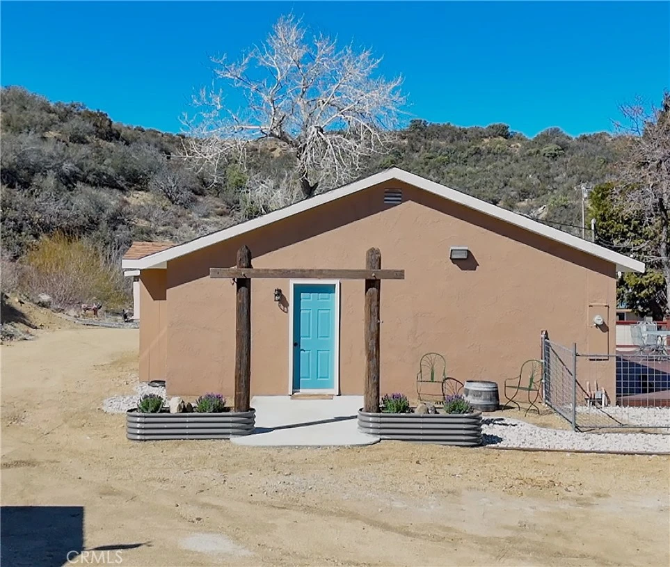 Completely Remodeled Home with Panoramic Views & Additional 3.3 acres (APN 3205-030-020) inlcuded for a total of 10 Acres. Located in the picturesque area of Leona Valley, this beautifully remodeled home offers unparalleled privacy and breathtaking views. Situated on 6.73 acres, with an additional 3.3-acre parcel. This is a unique opportunity with many possibilites. The 2-bedroom, 1-bath home (approx. 810 sq. ft.) has been fully updated with modern features. The kitchen includes custom stainless steel countertops, stainless sink and complemented by custom cabinetry, a built-in pantry, and stainless appliances. Tile backsplash accents the room perfectly. The open-living area is enhanced with tile flooring throughout, new insulation, and energy-efficient mini-split heating and cooling. Go outdoors and relax on the expansive Trex deck and take in the stunning valley views. The home includes a fire suppression system with a 15,000-gallon storage tank and fire department hookup provides peace of mind. Recent exterior upgrades include a new 40-year architectural shingle roof, fire-safe soffits and eaves, and fresh stucco with textured paint. Beyond the main home, a fully equipped ADU/guest house offers comfortable living space for one or two people. This converted trailer features a full bath, kitchenette, butcher-block counters, fridge, microwave, ceiling fan, electric baseboard heating, an on-demand propane water heater, full bath, compost toilet and Ethernet access. A wraparound Trex deck and custom brick patio create the perfect retreat, home office or a private place for guests. The property also includes a 30x40 Quonset hut shop with 220 service, workbenches, a full pneumatic system, and a 12x12 roll-up door. A passive solar-designed greenhouse provides an ideal environment for year-round growing, with a thermal bubble, triple-wall fiberglass panels, and temperature-regulated beeswax vents. For garden enthusiasts and homesteaders, the fruit orchard features a variety of trees, including peach, nectarine, apricot, cherry, apple, pomegranate, walnut, and more, with gray water irrigation in place. Despite its private setting, this home is conveniently located just minutes from schools, churches, restaurants, and shopping. Palmdale and the 14 Freeway are only 15 minutes away, making commuting or running errands a breeze. Don't miss this incredible opportunity to own a turnkey retreat in Leona Valley!