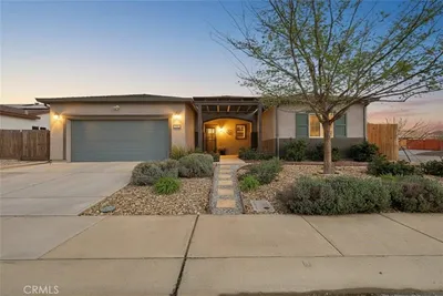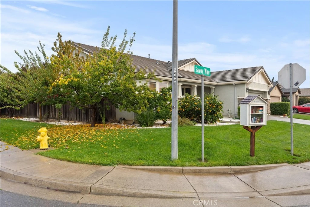 Step into comfort and functionality with this beautifully designed 4-bedroom, 2-bathroom home offering 2,211 sq ft of living space, perfectly situated on a generous corner lot in a quiet, established neighborhood. This thoughtfully laid-out single-story residence features a bright and open floor plan ideal for both everyday living and entertaining. Enjoy the flexibility of a formal living and dining room, along with a separate family room equipped with a fireplace that seamlessly connects to the kitchen—creating the perfect space for gathering with family and friends. The spacious kitchen is a true centerpiece, enhanced with sleek quartz countertops, offering ample cabinetry, a center island with dining bar, pantry storage, and a cozy breakfast nook with outdoor access. Whether you’re hosting or enjoying a quiet morning, this layout delivers both style and convenience. Retreat to the generously sized primary suite, complete with a walk-in closet and a well-appointed en-suite bathroom featuring dual sinks, a soaking tub, and separate shower. Additional bedrooms are comfortably sized, providing flexibility for family, guests, or a home office. Step outside to enjoy the low-maintenance backyard, complete with a variety of mature fruit trees—including cherry, orange, lemon, peach, and apricot—offering both beauty and a seasonal harvest. This corner lot location has the curb appeal, making this home the perfect blend of comfort, charm, and functionality.