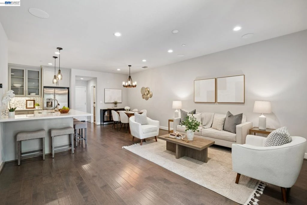 Modern design, extensive upgrades & a polished, turnkey finish define this beautifully updated two-story residence in Livermore’s sought-after Sage community. Thoughtfully enhanced throughout, the home offers an open, airy layout that feels both spacious & inviting. The kitchen sits at the center of the home, flowing seamlessly into the main living area to create a natural space for everyday living & entertaining. A large breakfast bar with seating for five anchors the space, complemented by pendant lighting that adds both warmth & visual interest. Upgraded cabinetry, stone countertops, custom backsplash & stainless steel appliances elevate both style & functionality. Engineered wood flooring runs through the main areas, paired with upgraded lighting, carpeting & a cohesive, modern aesthetic. Upstairs, the layout is both functional & well-designed. The primary suite is privately positioned & features an upgraded bathroom with a refined shower enclosure & tile detailing, along with a large walk-in closet complete with built-in organizers. Two additional bedrooms are located down the hallway & share a well-appointed full bath, offering comfortable separation for family or guests. All bedrooms are generously sized, creating a sense of space that’s often hard to find in similar homes. The home has been carefully improved with features that enhance everyday living, including a dedicated built-in office area, upgraded upstairs laundry room cabinetry & a finished side-by-side garage with epoxy flooring. Just outside the front door, a private patio area provides an additional outdoor space. Ideal for morning coffee, relaxing, or enjoying the quiet neighborhood setting. Located just down the street from the community pool and clubhouse, the home offers easy access to Sage’s resort-style amenities, including a pool, spa, fitness center, yoga area, playgrounds, and beautifully maintained green spaces, while still maintaining a sense of privacy and separation. Additional highlights include a water filtration system, EV charger & solar pre-wiring, offering both convenience & forward-thinking efficiency. Ideally located with easy access to freeways, BART & ACE Train, this home is also just minutes from Downtown Livermore’s restaurants, shops & entertainment. Updated, spacious & move-in ready, this home offers a seamless blend of modern comfort, thoughtful design & convenience.