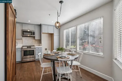 Perfectly positioned in the desirable Brookmeadow Park neighborhood, this beautifully maintained and thoughtfully updated 2 bedroom, 2 bath condo offers an exceptional opportunity to step into homeownership in wonderful Livermore. Step inside to a light-filled living room featuring engineered hardwood flooring, fresh interior paint, and designer touches throughout. The updated kitchen shines with new cabinetry, hard-surface countertops, new appliances, modern lighting, and a charming farmhouse door leading to the laundry closet with your own in-unit washer and dryer. Enjoy morning coffee or casual meals in the cozy breakfast nook overlooking the surrounding landscape. The hallway bath features new LVT flooring, a shower-over-tub combination, and an updated light fixture. Both light-filled bedrooms offer fresh carpet, updated baseboards, and crisp paint. The dedicated primary bathroom has also been refreshed with new flooring and a new light fixture, creating a cohesive, move-in-ready feel throughout the home. Additional highlights include one assigned carport parking space, an additional guest parking space, and close proximity to the community pool and other neighborhood amenities. Conveniently located near shopping, dining, commuter routes, and all that Livermore has to offer.