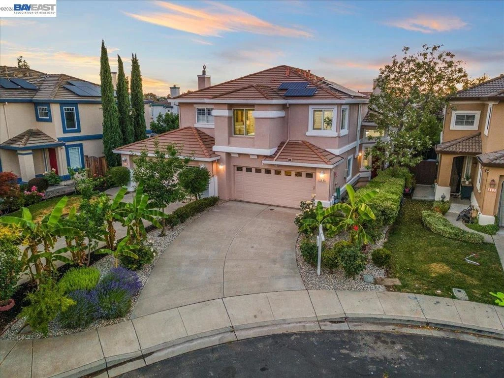 The NE-facing Duet home in the Creekside development in Livermore , loaded with $150K of premium upgrades, shows like a model! The spacious living and dining room combination boasts vaulted ceilings and abundant natural light, featuring top-of-the-line stainless steel appliances, a modern accent backsplash, and custom Shaker-style cabinets in the kitchen. Impressive upgrades include luxury vinyl flooring, fans, and recessed lights in all rooms. Downstairs, there is an updated half bath, a laundry facility, and the entryway. Upstairs, the spacious master bedroom has an updated bathroom with two separate vanity sinks, and there are two more bedrooms with an upgraded bathroom. The property includes a two-car garage with storage overhead racks, custom cabinets, heavy-duty garage flooring, a custom security door, a whole-house water softener system, paid solar, an EV charger, smart home features, and plantation shutters. Located in a safe and vibrant neighborhood with easy access to major freeways, downtown Livermore, parks and trails, Del Valle Lake, wineries, restaurants, and shopping, this home has no HOA. Don't miss this opportunity to make this beautiful home yours!