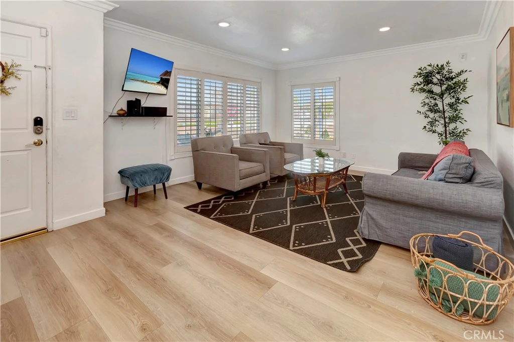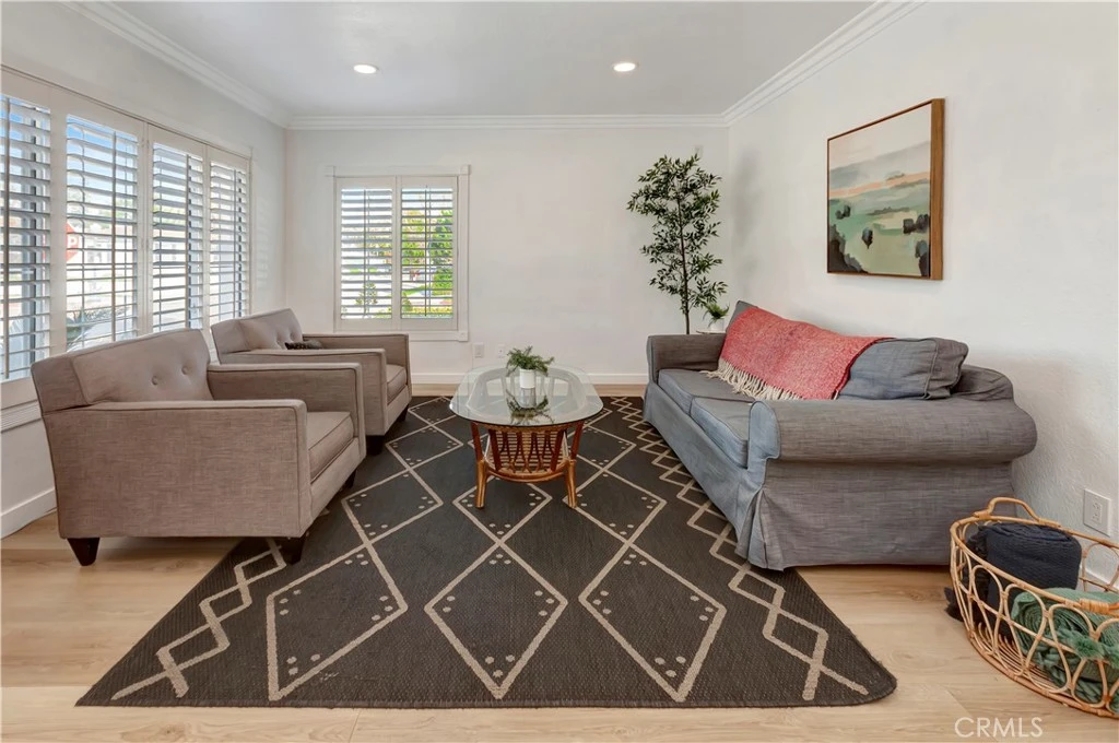 Welcome to this beautifully updated California Heights home where thoughtful design, comfort, and indoor-outdoor living come together seamlessly. Offering three bedrooms and two full bathrooms across approximately 1,226 square feet, this residence has undergone extensive upgrades while maintaining a warm, inviting feel. The light-filled living spaces feature wide-plank flooring, recessed lighting, and custom window shutters that create a clean, cohesive look throughout. The remodeled kitchen is both stylish and functional, with crisp cabinetry, quartz countertops, open shelving, modern hardware, and updated appliances, flowing effortlessly into the dining area for everyday living or entertaining. Both bathrooms have been tastefully renovated with updated vanities, fixtures, tile, and finishes, offering a fresh, spa-like experience. Each bedroom is generously sized, with the primary suite providing direct access to the backyard, creating a private retreat. Step outside to a lush, thoughtfully designed yard that truly extends the living space. Multiple seating areas, mature tropical landscaping, and café lighting create an ideal setting for entertaining, relaxing, or enjoying Southern California evenings year-round. Additional highlights include an attached garage with direct access to the kitchen, updated systems and finishes, and excellent curb appeal in one of Long Beach’s most sought-after neighborhoods. Located in California Heights, this home offers close proximity to local shops, dining, parks, and freeway access, while still feeling tucked into a quiet residential setting. Don't miss out on truly a turnkey opportunity in a neighborhood known for charm, community, and long-term value!