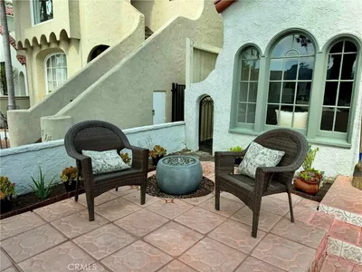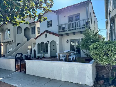 This thoughtfully updated Spanish-style residence offers a bright, welcoming layout with a seamless blend of classic character and modern comfort. Natural light fills the interior, highlighting Luxury Vinyl flooring, clean finishes, and a well-defined flow across both levels. The main level features formal living and dining spaces alongside a chef-inspired kitchen with custom cabinetry, a large center island, stone-look counters, and high-end appliances. A main-floor bedroom and full bath add flexibility, while the gated, hardscaped front patio extends the living space outdoors. Upstairs, the primary suite provides a spacious retreat with a walk-in closet, spa-style bath, and private balcony. A secondary en-suite bedroom and additional outdoor sun deck complete the upper level, offering multiple indoor-outdoor living options. Recent improvements reported by the seller include a new roof, updated electrical and plumbing systems, serviced HVAC with new ductwork and vents, new flooring, and refined finishes throughout. The property is currently permitted for short-term rental use, with an active permit expiring July 18, 2026. Conveniently located near coastal amenities, dining, recreation, and everyday services, this home offers a versatile layout designed to support both everyday living and extended stays.