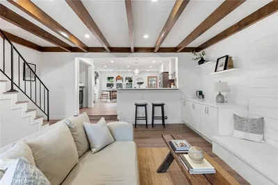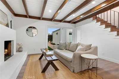 Exceptionally remodeled and situated on a quiet interior location in the highly sought-after Artcraft Manor neighborhood of Long Beach, this refined residence offers approximately 1,809 square feet of thoughtfully designed living space on a 5,506 square foot lot, delivering a level of quality, finish, and cohesion rarely seen in the area. The home has been comprehensively upgraded with new flooring throughout, a smooth Glacier White stucco exterior, new windows, upgraded interior doors with polished nickel hardware, custom hand-painted beams, and designer lighting throughout. A custom walnut Dutch front door, new sliding glass doors upstairs and downstairs, and a new air-conditioning system enhance both style and comfort. The fully reimagined kitchen serves as a true centerpiece, featuring custom micro-panel cabinetry with built-in pantry and wet bar, quartz countertops, a designer tile backsplash, clay kitchen sink, polished nickel fixtures, and KitchenAid appliances, creating a bright and sophisticated space ideal for both entertaining and everyday living. All bathrooms have been tastefully renovated with cohesive, high-end finishes including new tile, modern vanities, frameless-style shower glass, updated fixtures, and designer lighting. The primary bathroom features a double vanity, and multiple bathrooms have been fully permitted and signed off, providing added peace of mind for the next owner. Additional interior upgrades include custom closets, a custom dry bar, shiplap detailing around the fireplace, and a new washer and dryer, along with thoughtfully selected designer fixtures and hardware throughout. The private backyard has been enhanced with a new deck, pergola, BBQ area, planters, artificial turf, DG landscaping, and a newly painted fence, creating an inviting outdoor space ideal for entertaining and relaxing. Known for its quiet, tree-lined streets and strong pride of ownership, Artcraft Manor offers convenient access to Long Beach Airport, major freeways, shopping, dining, and local amenities. With its elevated finishes, thoughtful upgrades, and true turnkey condition, this home presents a rare opportunity within one of Long Beach’s most desirable neighborhoods.