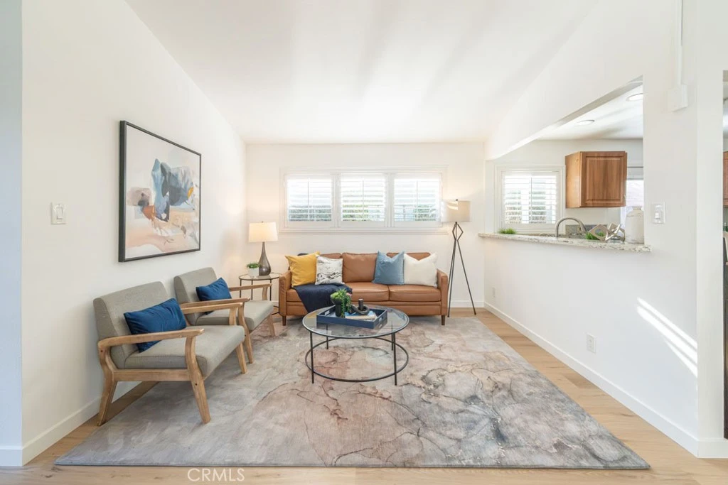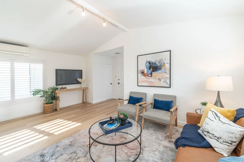 Priced below many 2 bedroom 1 bathroom condos and there is NO HOA!!! What a wonderful surprise walking into this adorable home, with a freshly painted white interior and a vaulted ceiling. Light, bright and airy describes this open living space concept! The living area has beautiful plantation shutters sharing space with the dining area while flowing seamlessly into the updated kitchen. The new light colored laminate flooring throughout gives a fresh look to this 2 bedroom, 1 bathroom home. Note the new doors which include a sliding glass door to your own private patio, the double closet doors in one of the bedrooms, the door leading from the kitchen to the outside as well as the side door to the garage. The windows are dual pane with the exception to the window alongside the front door and you even have a coat closet. The bathroom has a cast iron tub with tiled walls. The vanity is new along with the light, the mirrored medicine cabinet and the exhaust fan. This home has ductless heat and air. The laundry hookups are in your garage. Did I mention that you have your own private patio, offering a great space to relax, BBQ, entertain and for your pets to hang out!! Conveniently located near parks,schools, churches, shopping, restaurants and public transportation. Nearby freeways include the 710,the 91 and the 405. This home could be yours!!! Do not miss out!