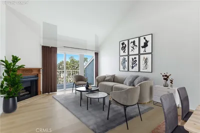 Don't miss this opportunity to purchase this large "top floor" 2 bedroom 2 full bath condo, with vaulted ceilings, and a balcony. Freshly painted throughout. Fireplace is in living room. Newer quartz counter in kitchen. Inside laundry hook up is gas or electric. Easy care laminate floors. Move in condition! Close to PCH, Traffic Circle and lots of shopping and restaurants. Deeded secure parking space # 21. Call today to view this lovely condo.