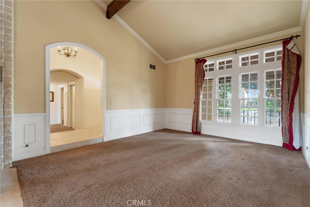 Beamed Ceilings, Ceiling Fans, Crown Molding, Cathedral Ceilings, Separate Formal Dining Room, Eat In Kitchen, Granite Counters, High Ceilings, Recessed Lighting, Storage, Sunken Living Room, Bedroom On Main Level, Primary Suite, Walk In Closets