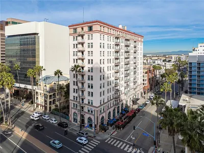 LOOK at this VIEW. Top-floor historic studio with Pacific Ocean views, abundant natural light, and rare privacy in one of Long Beach’s most iconic Ocean Blvd buildings. Perched on the top floor of the iconic Sovereign Historic Building on Ocean Blvd, this charming studio offers a rare opportunity to own a piece of Long Beach history with light, privacy, and coastal views. Facing southeast, the unit is filled with natural light throughout the day and enjoys views toward the shoreline and Pacific Ocean, creating an open and airy feel that lives larger than its square footage. Being on the top floor provides the added benefit of no neighbors above and only one shared wall below, enhancing privacy and quiet enjoyment. Inside, the home features wood floors, original architectural character, and timeless details that reflect the building’s Tudor-Gothic design and historic charm. The efficient layout makes excellent use of space, ideal for a first-time buyer, investment property, or corporate ownership opportunity. Fnished in 1923, the Sovereign was one of Long Beach’s earliest own-your-own apartment buildings, a visionary concept that helped define luxury coastal living in the Roaring Twenties. Residents and guests are welcomed by a grand marble-floored lobby, a classic black awning, and two majestic lion statues guarding the entrance. The building also offers access to shared spaces including a top-floor solarium and library, adding to its distinctive character. Conveniently located near the beach, coastal bike paths, restaurants, shopping, parks, marina, Aquarium of the Pacific, and nightlife, with close proximity to the Pike, downtown Long Beach, Convention Center, Port of Long Beach, Port of Los Angeles, and major freeways. A rare opportunity to own a top-floor residence in one of Long Beach’s most recognizable historic buildings, combining architectural significance, location, and long-term appeal. Grab a piece of history.