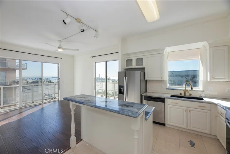 Coveted corner residence offering sweeping south-facing ocean and coastline views, showcased through expansive windows and wraparound balconies. Tucked away from Ocean Boulevard traffic, this quiet setting allows you to fully enjoy the scenery and coastal ambiance. The thoughtfully upgraded interior features an updated kitchen with white cabinetry, blue marble countertops that echo the ocean beyond, stainless steel appliances, engineered hardwood flooring throughout, fresh interior paint, new bathroom light fixtures, and convenient indoor laundry. Residents enjoy resort-style amenities including a pool, spa, barbecue area, well-appointed gym, sauna, and the standout feature—24-hour concierge service. The HOA fee also includes high speed internet and basic cable. Ideally situated in the heart of downtown with effortless walkability to restaurants, coffee shops, and shopping, plus a front-row seat to the Long Beach Grand Prix and other iconic city events.