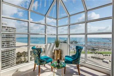 Live on the TOP FLOOR of a 30-story West Ocean luxury condominium complex! You will feel like a king with panoramic 280-degree views looking out over the ocean, coastline, and city from the penthouse of one of the most luxurious and tallest residential high-rise in all of Long Beach. This sprawling single-level penthouse has 3 separate balconies and mesmerizing views from every room. Well-appointed sophisticated design with a recent million-dollar remodel, including a Chef’s Kitchen with premium German Miele appliances, a Miele coffee machine, 2 dishwashers, an induction cooktop, custom-made Italian Dada cabinets, Caesar stone, French Oak woods, and a wired sound system. You will appreciate the innovative and elegant dual-glazed fully retractable slide pivot doors and walls installed by premier ultra slim folding patented side-lock technology for maximum noise protection, privacy to individual rooms, and converts to an open living environment, maximizing the panoramic views. West Ocean offers hotel-like amenities: 24/7 concierge, pool/spa, fitness center, billiard room, business center, lounge area, outdoor BBQ/fireplace, guest suites for visitors, and climate-controlled wine storage. Enjoy nearby entertainment, restaurants, historic Pine Avenue, Shoreline Village, Terrace Theater, Cinema, Farmer’s Market, Convention Center, the Aquarium, jet skis, sailing, fishing, and multiple yacht clubs. Please come and enjoy the City by the Sea, which can only be appreciated with a private tour of this exceptional penthouse.