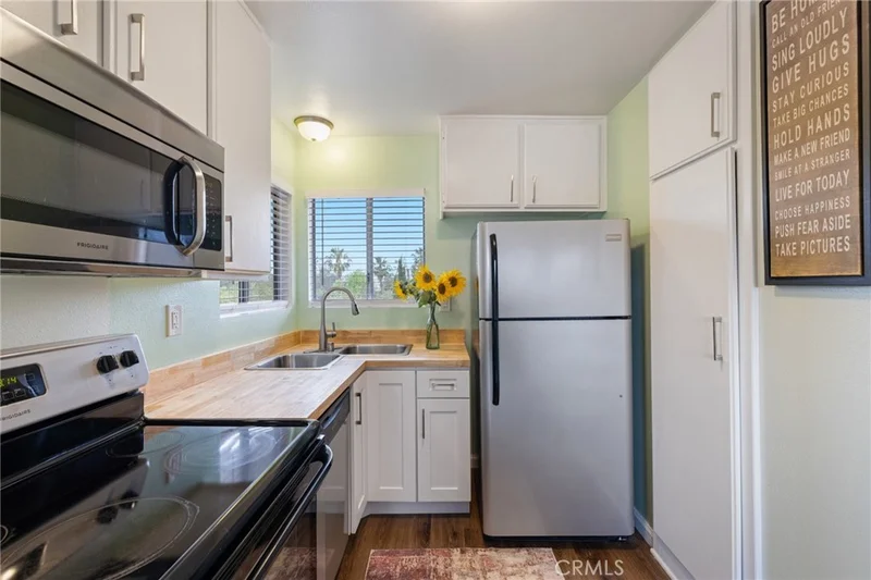 Fantastic views in this private, top floor Condo. Incredible, unobstructed views overlooking Downtown Long Beach from your private balcony & bedroom window, from your kitchen window, view the Gerald Desmond Bridge & the park. Take a walk across the street to Cesar Chavez park and enjoy a nice picnic under one of the many trees. This remodeled, one bedroom, one bath has everything you're looking for in downtown Long Beach. Are you looking for a unit that has a lot of natural light? Watch the sun rise from your living room and balcony, watch the sunset from your kitchen window. This unit has a lot of natural light perfect for plants while you soak in all that good morning sunlight for your dose of vitamin D. The entry features a hallway to the living room with recessed lights & updated flooring throughout. Cool off on those summer days with a mini split air conditioner. The remodeled kitchen includes stylish butcher block counter tops, lower white shaker cabinets with soft-closing drawers with new kitchen cabinet handles, new kitchen blinds, freshly painted kitchen walls to complement the view of the park's green grass & trees from the kitchen window, all Frigidaire appliances are included. The bedroom can accommodate all your bedroom furnishings as well as a desk for those who work from home. The bedroom also has an ensuite walk-in closet that can hold an ample amount of storage. The updated bathroom includes new paint to complement the modern Evoque Arte Porcelain Patterned Floor tile, new vanity, Moen Genta double handle bathroom faucet, light fixture, and new tub and shower trim. This unit will satisfy all of your “must haves” which include a in unit washer & dryer, a window in the bathroom, a deeded parking space within a secure gated complex, the complex has a updated elevator, located close to downtown, location, location, location, public transportation, Pine Avenue, The Pike, Queen Mary, Aquarium of the Pacific, great restaurants and shopping. HOA includes Earthquake Insurance, water, and trash along with common area upkeep. Pet friendly community. This unit is great for first time home buyers. The building is FHA and VA Approved!