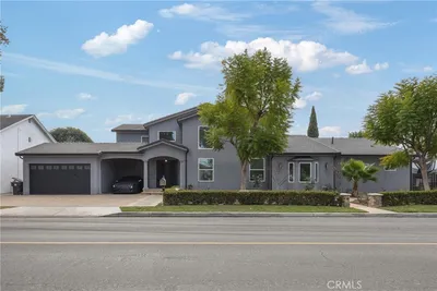 This stunning custom-remodeled 6-bedroom, 5.5-bathroom home offers 5,200 sqft of luxury living with modern amenities throughout. Featuring brand-new upgrades including a new roof, windows, plumbing, and electrical, this home is designed for both comfort and style. Enjoy expansive living spaces with hardwood floors, a gourmet kitchen with a porcelain waterfall island, double ovens, and a walk-in pantry, perfect for entertaining. The private primary suite offers a balcony, luxurious bath, and walk-in closet. Four mini-suites with en-suite baths and custom closets provide ample space for family or guests. The backyard is an outdoor paradise with a dining area, swimming pool, and plenty of room to unwind. Additional perks include solar panels, a laundry room, 2-car garage, and RV parking. Don't miss your chance to tour this exceptional home!