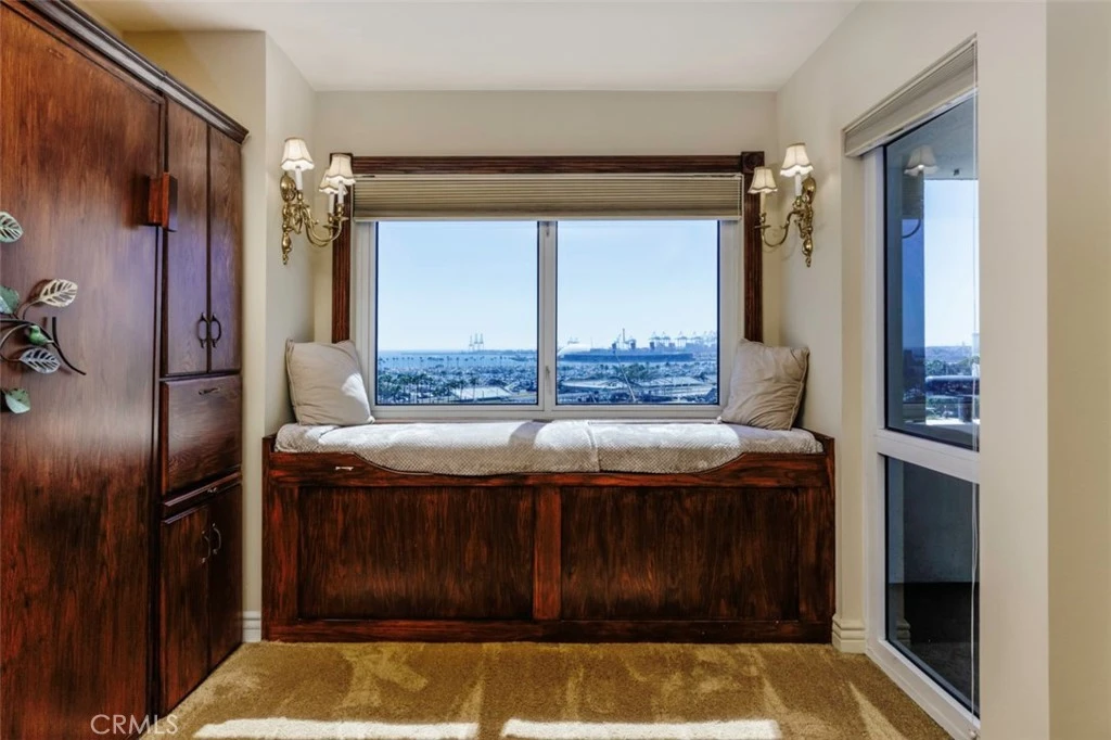 Live life with fantastic ocean views from the HarborPlace Tower! This “two bedroom” condo has been expanded by opening up the secondary bedroom into the living room making it functionally more of a one bedroom condo with an optional second sleeping area that is not enclosed. This makes the home flow better and help accentuate the beautiful ocean views which you can see from every room and your private balcony. This great condo looks out to the ocean, sandy beach, Queen Mary, marina and Catalina Island. Perfect to the Grand Prix. Enjoy the central heat, A/C and ocean breezes. This unit was extensively remodeled in the past with custom kitchen, new refrigerator and built-in bar. There is a murphy bed carefully tucked away in the secondary bedroom that is extended off Livingroom. Both bathrooms were redone with large soaking tub in the primary. Plenty of storage with walk-in closet, custom made bookcase plus a utility work area next to full sized washer and dryer. There are two parking spaces that are tandem. Luxury community with concierge service, gym, community room, meeting rooms and an inviting pool and sauna area. Live near all the beach action, marina, bike path, entertainment, restaurants, Shoreline, The Pike and night life.