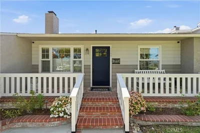 This beautifully remodeled home has been transformed down to the studs, offering modern comfort and thoughtful design throughout. Step inside to an inviting open-concept layout where the kitchen flows seamlessly into the living and dining areas. The kitchen features custom cabinetry and premium stainless-steel appliances, creating a bright and functional heart of the home. A cozy stone fireplace anchors the living space, enhanced by recessed lighting for a warm, welcoming setting. The spacious family room impresses with soaring cathedral ceilings and a stunning fireplace as its centerpiece, perfect for relaxing or entertaining. All bathrooms have been tastefully remodeled with elegant finishes and keen design details that elevate everyday living. The primary en-suite bedroom is a true retreat, boasting vaulted ceilings and a sprawling bathroom that opens directly to the backyard—blending indoor luxury with outdoor access. Step outside to your private backyard oasis, complete with a covered patio, custom hardscape, and a recently built pool and spa—ideal for year-round enjoyment and resort-style relaxation. Additional highlights include central heating and air conditioning, dual-pane windows throughout, updated copper plumbing, and more. Best of all, this wonderful property overlooks Heartwell Park, delivering panoramic views and a serene front-porch setting right on the park. Enjoy peaceful mornings on your front porch facing the greenery and unwind in your resort-like backyard retreat! This must see home sits on a very generous lot, and is proximate to entertainment, freeways, top schools, dining and golf courses. Hurry, this one will not last.